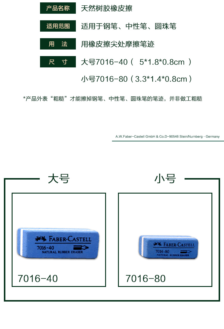 德國(guó)輝柏嘉沙橡皮 可擦水筆鋼筆圓珠筆橡皮擦 磨砂橡皮擦 7016-40大號(hào)/7016-80小號(hào) 開學(xué)