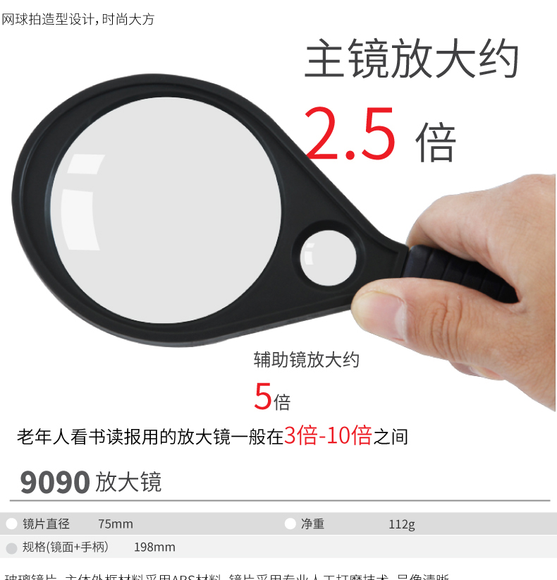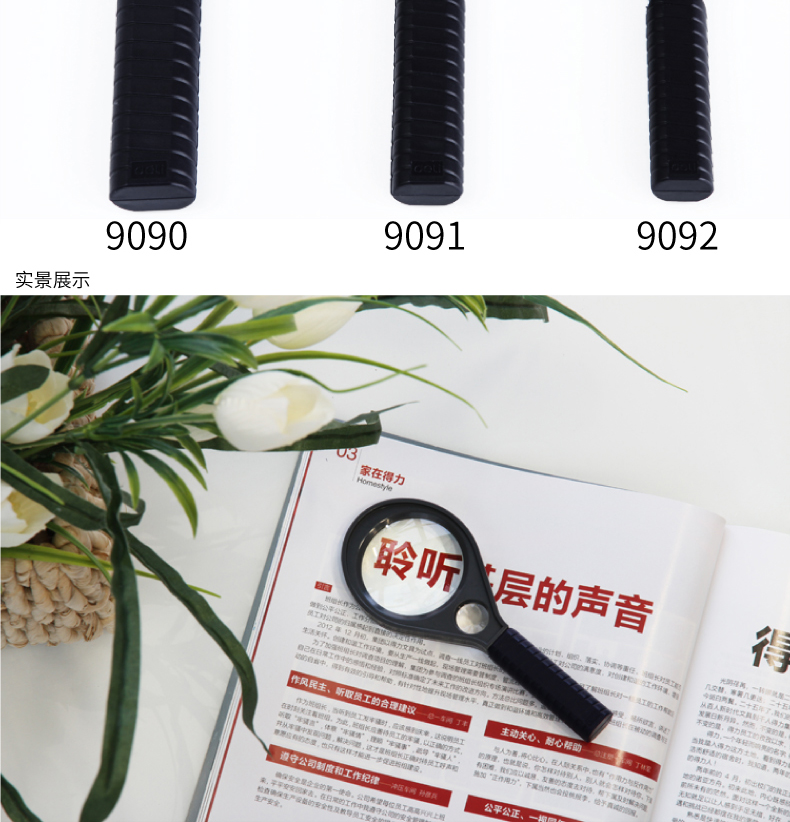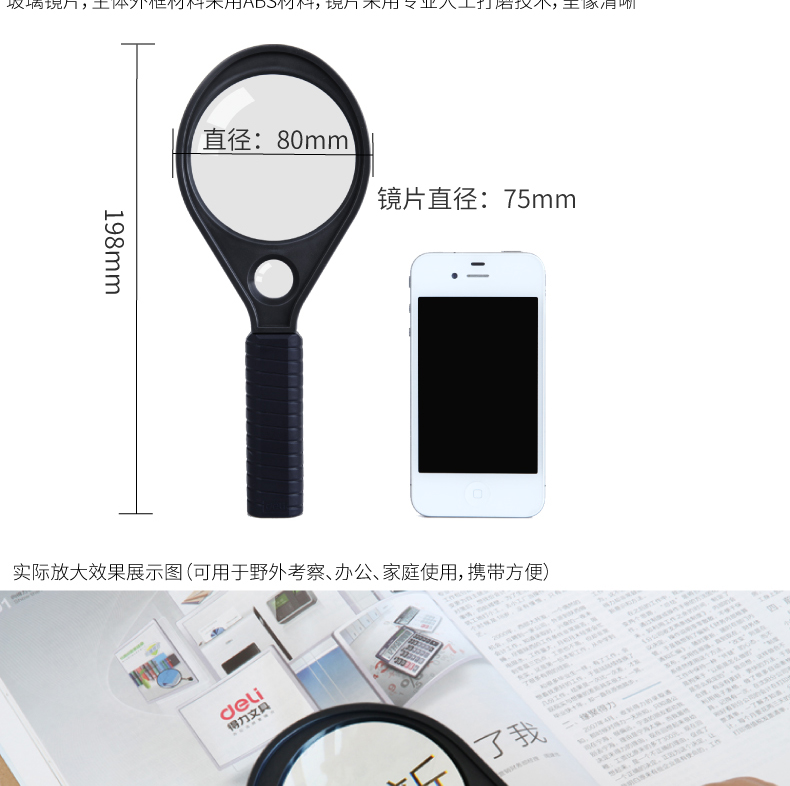 得力9090/9091放大鏡2.5倍放大5倍輔鏡放大老年閱讀看報兒童識字