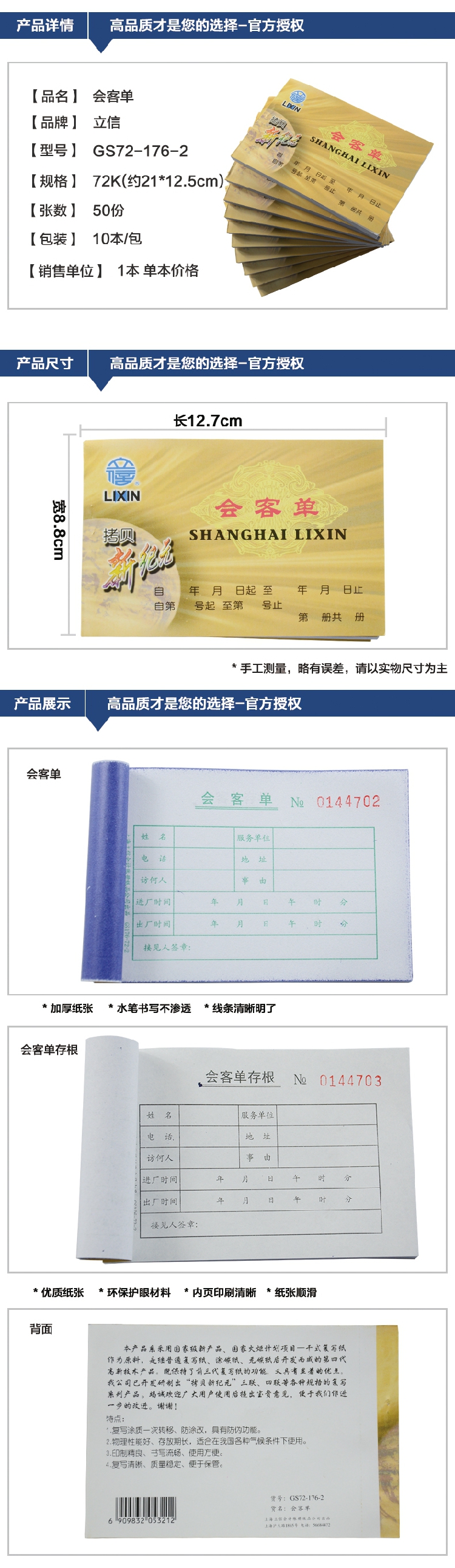 立信會(huì)客單 立信GS176-72-2拷貝無(wú)碳復(fù)寫會(huì)客單 公司會(huì)客單
