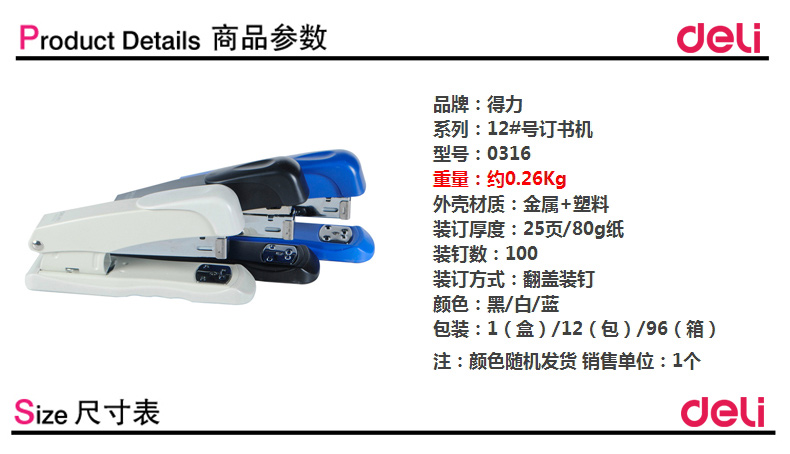 得力0316訂書機適用24/6,26/6 標準12號 可訂25張紙 釘板可旋轉
