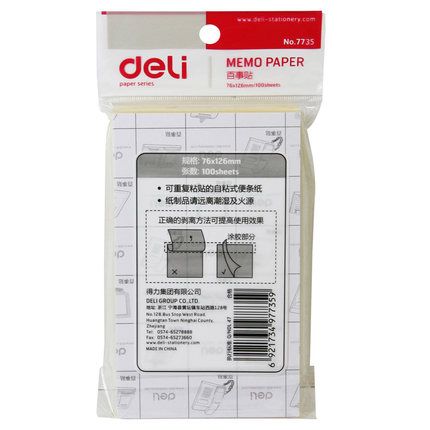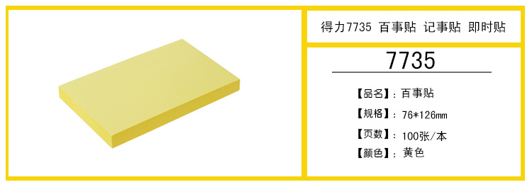 得力7735 百事貼 記事貼 即時(shí)貼 N次貼 便利貼 便簽紙 76*126mm