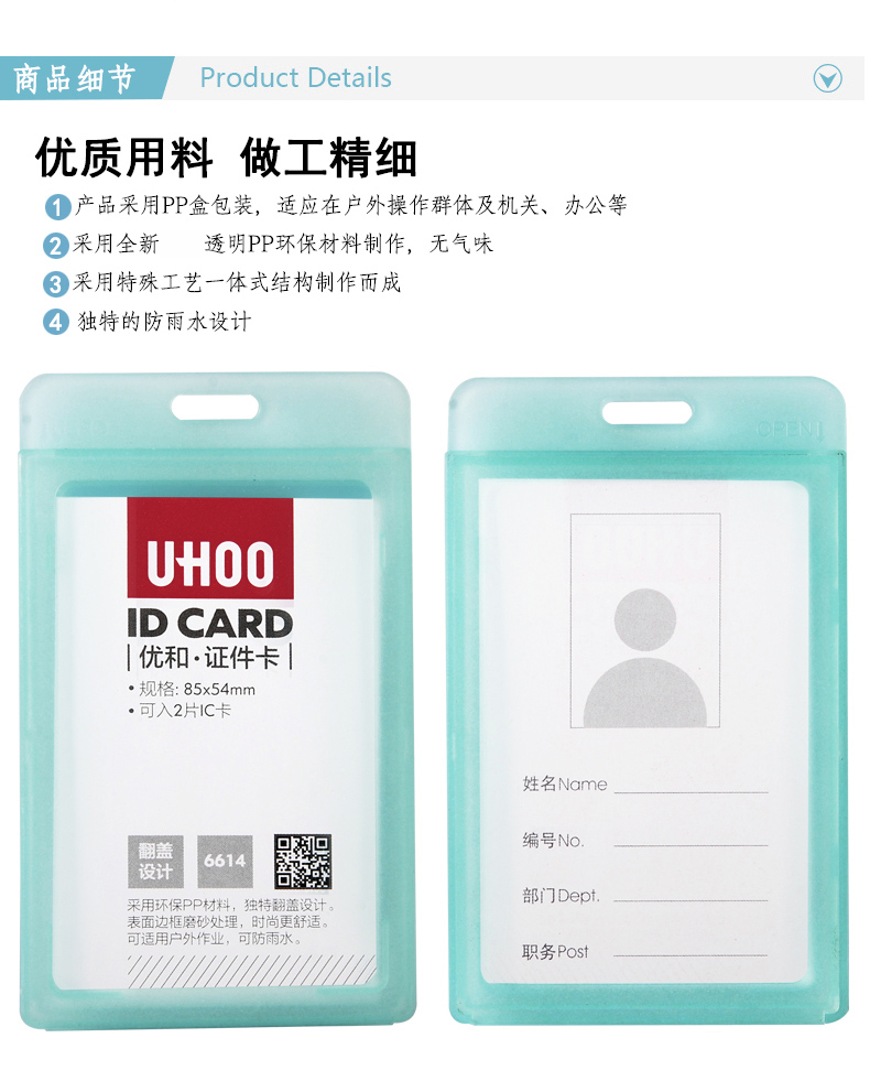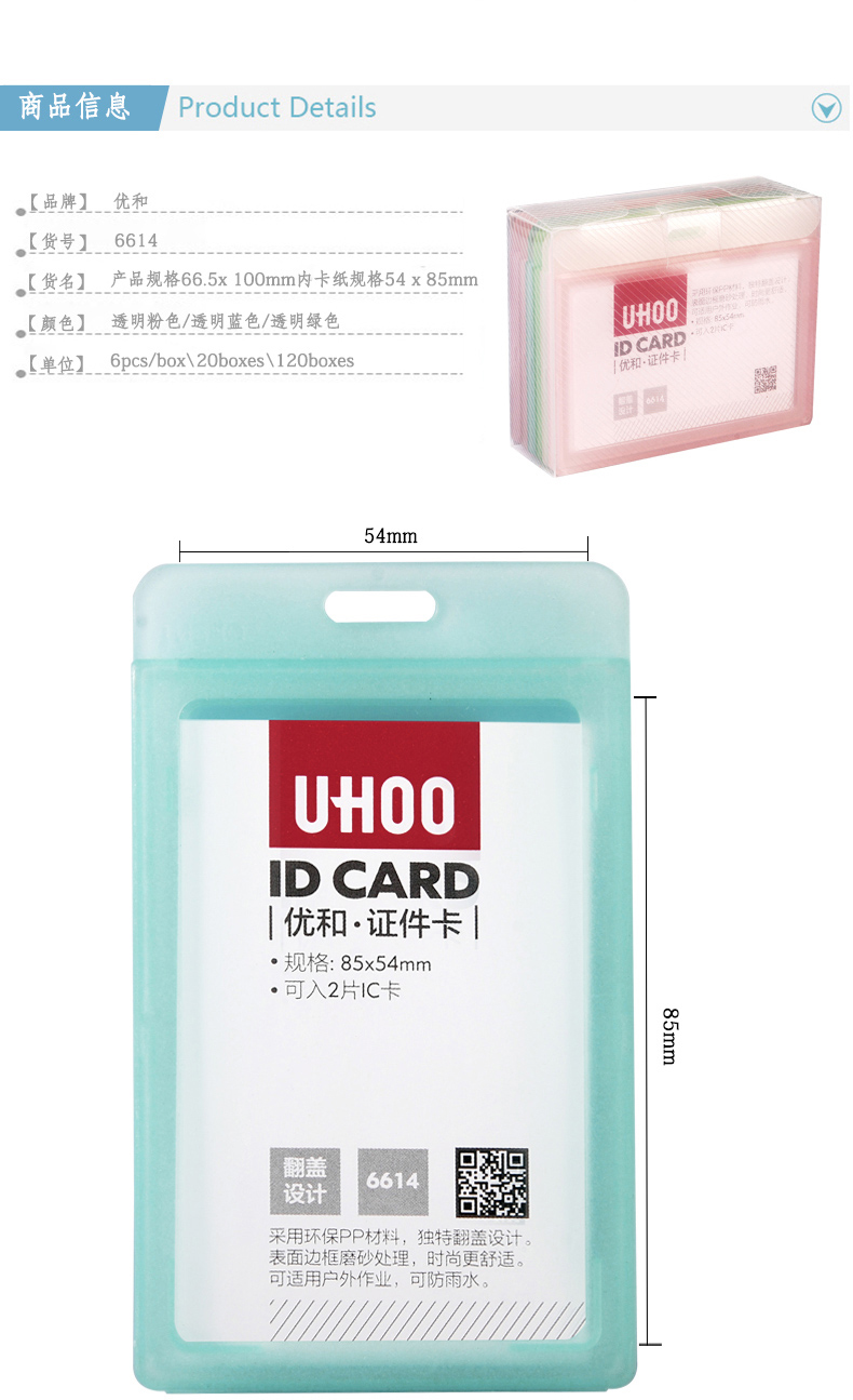 優和6614證件卡套商務員工胸牌上崗證工作牌磨砂吊牌掛繩工作證胸卡