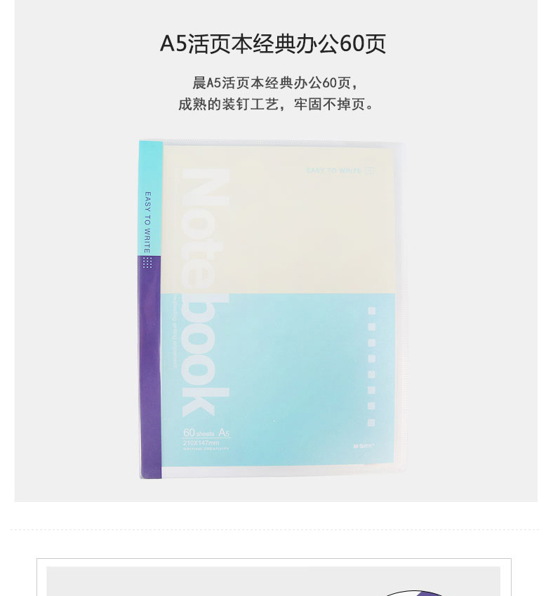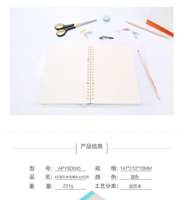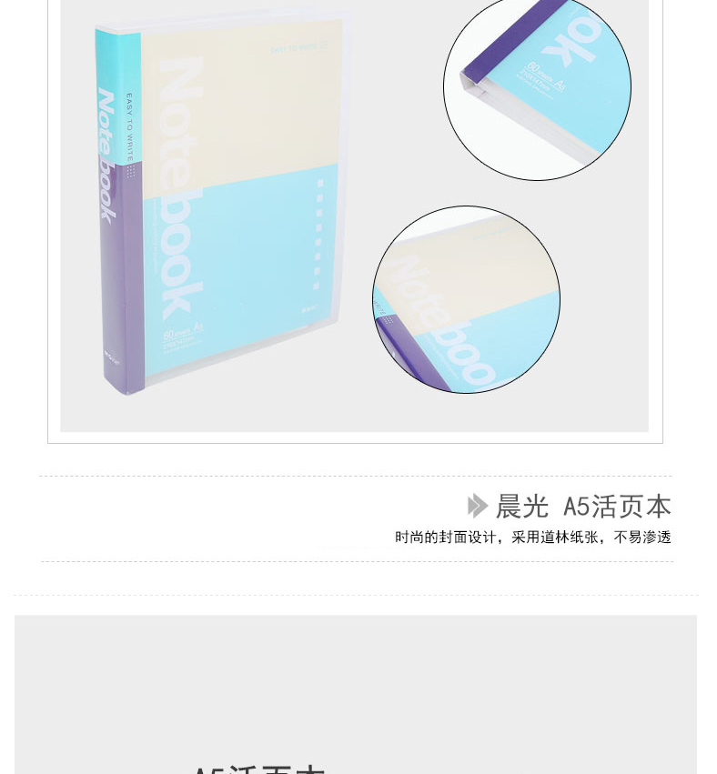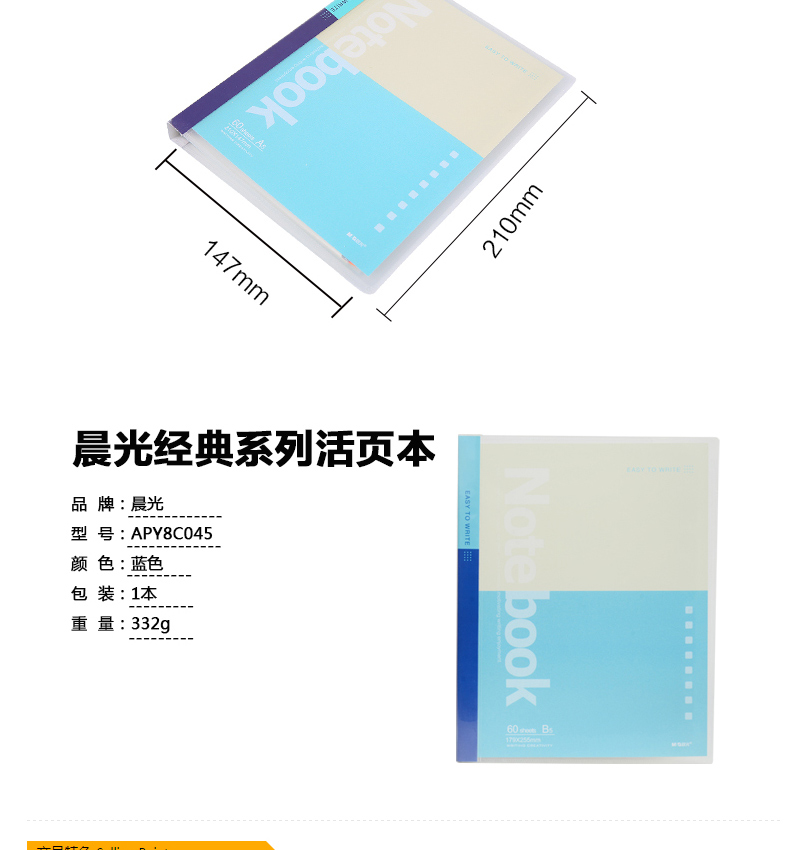 晨光APY8C045活頁本A5/B5-60頁PP封面活頁夾8601筆記本26孔
