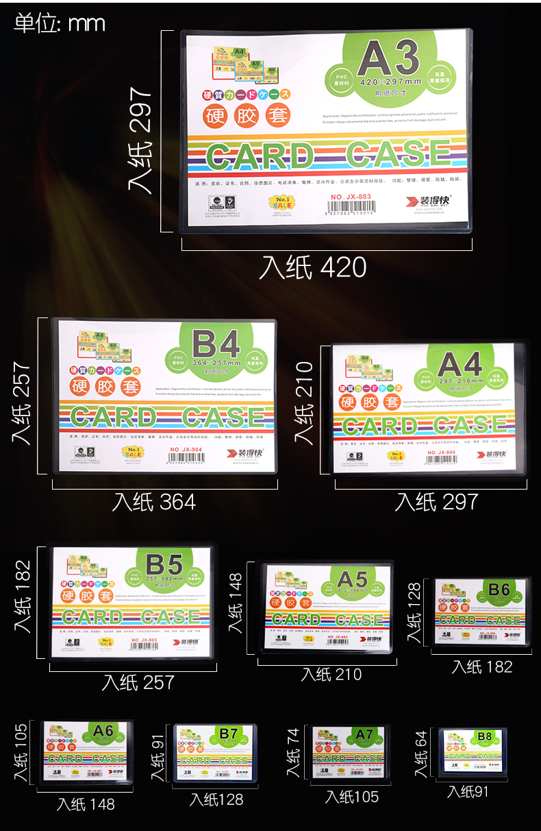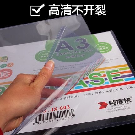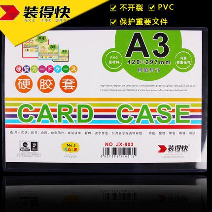 裝得快PVC膠套 A3硬膠套透明卡套文件塑料外保護(hù)套 證件防皺卡套