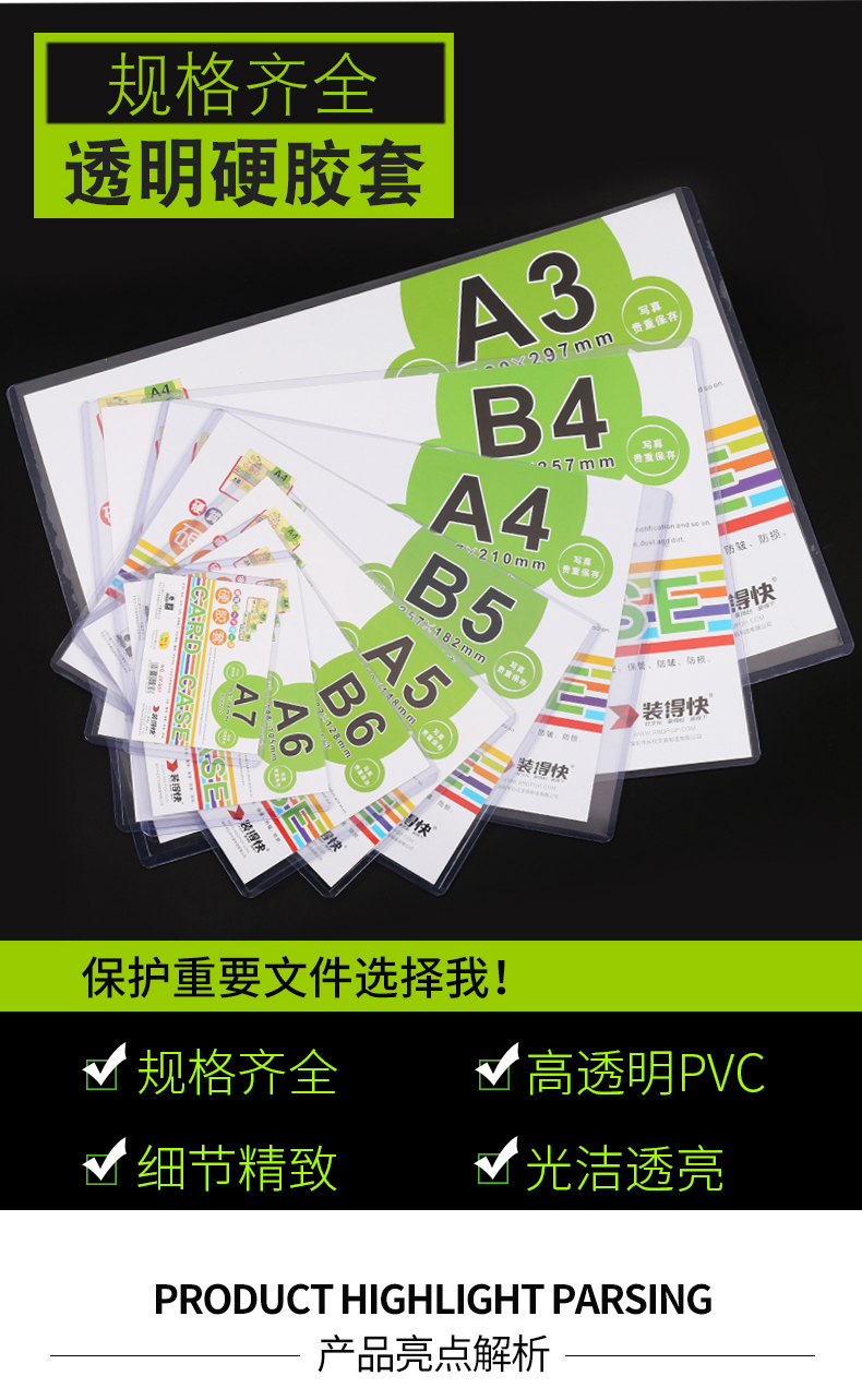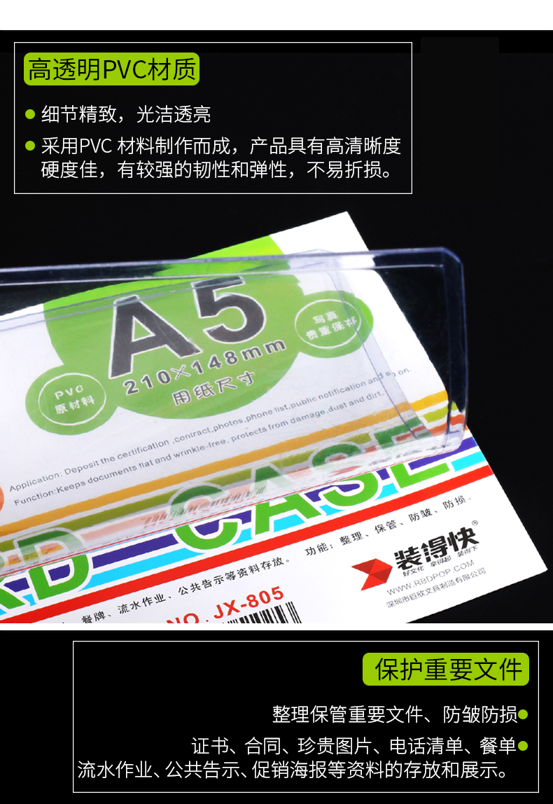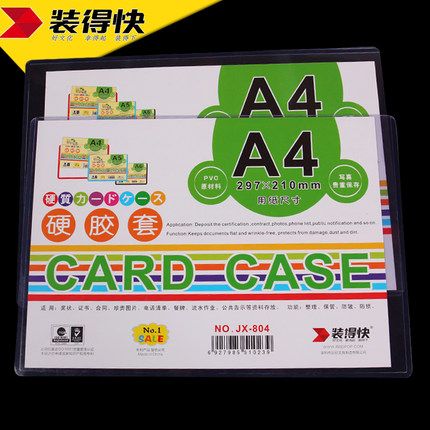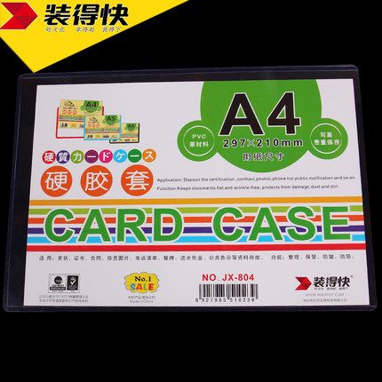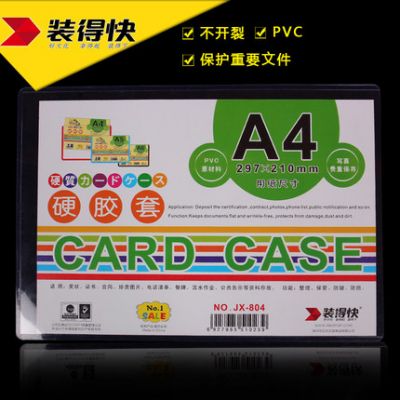 裝得快JX-804硬膠套透明文件保護合同證件餐牌證書防皺A4硬卡膠套