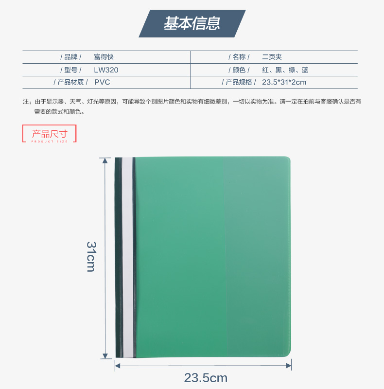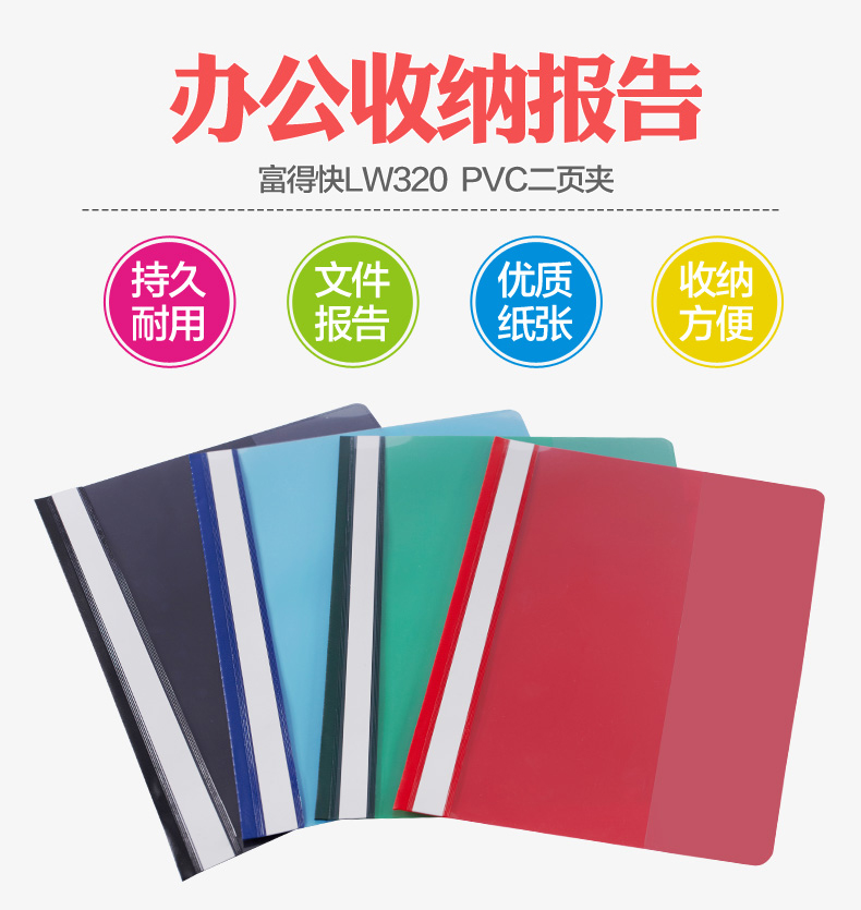 富得快 LW320文件夾套資料整理夾a4 單片夾文件套裝訂夾2孔文件夾