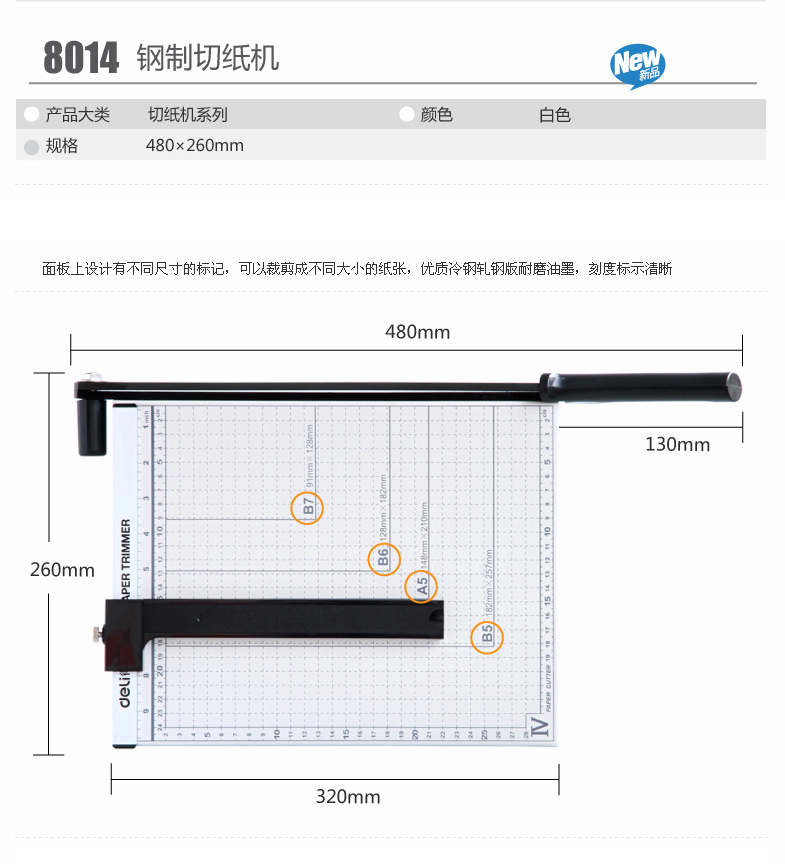 得力8014 手動裁紙刀 A4 鋼制切紙機(jī) 名片卡片相片切刀 切紙器切割 A4切紙刀