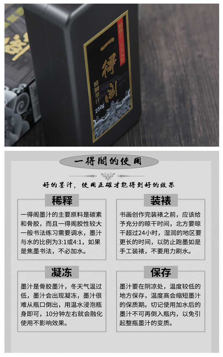 正品一得閣練習墨汁00g/250g文房四寶書法初學者學生毛筆墨水