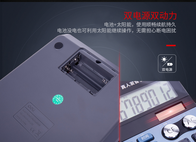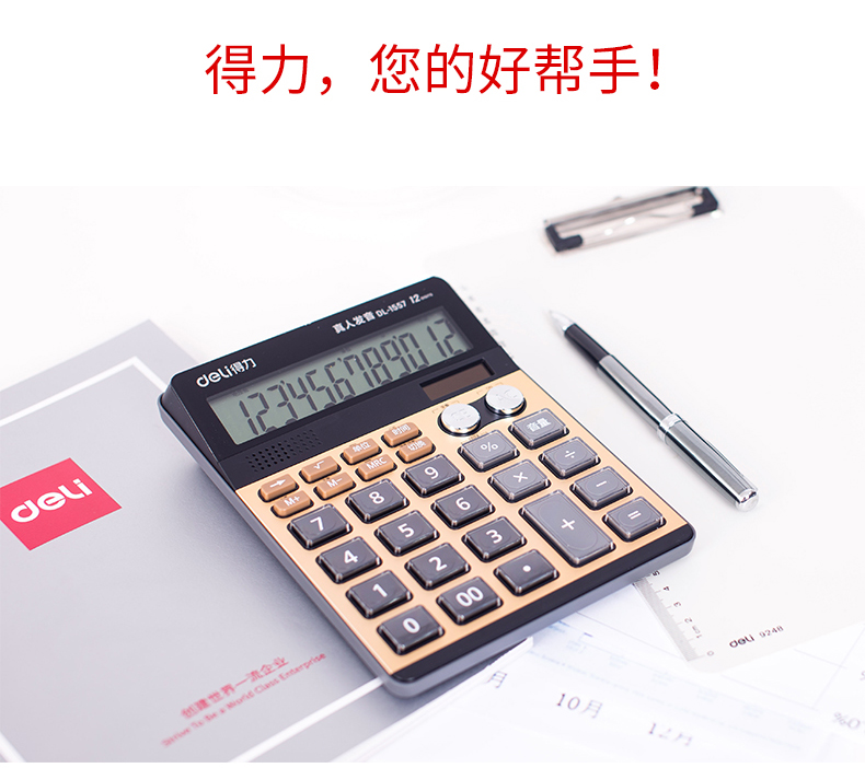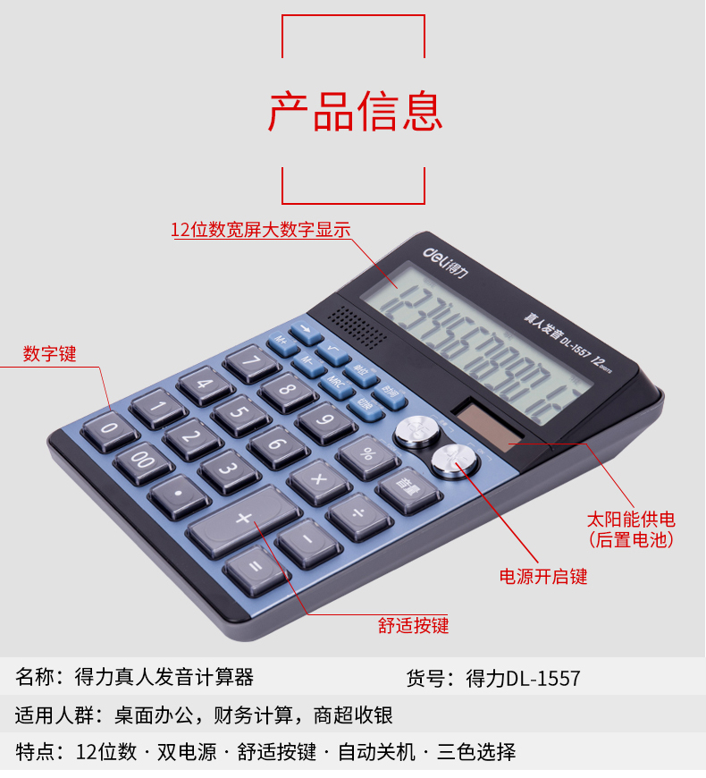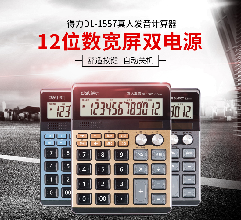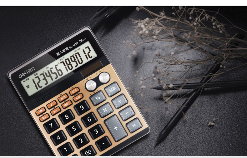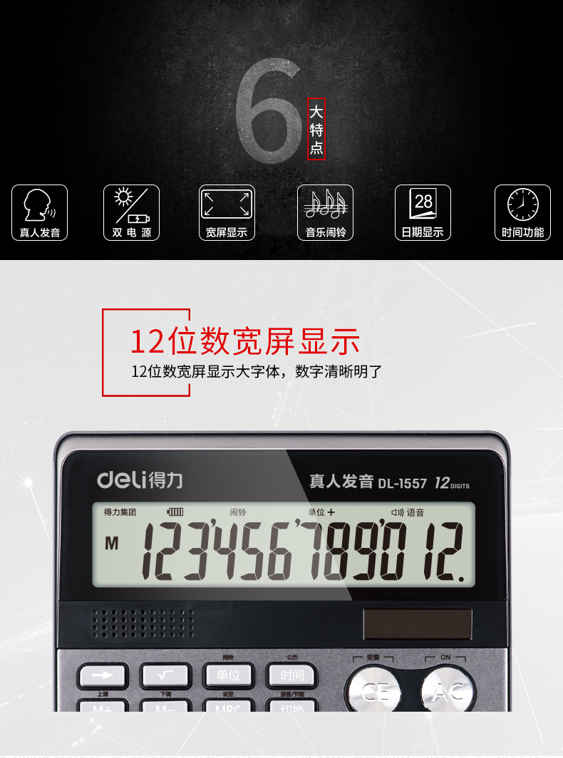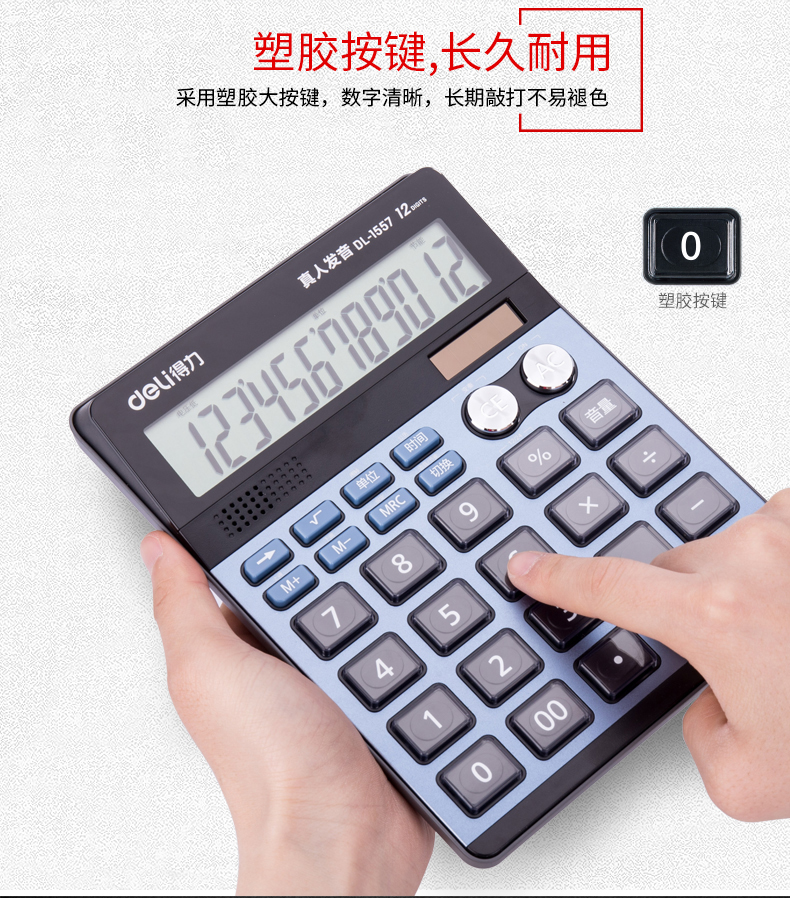 得力1557商務(wù)辦公計算器雙電源財務(wù)會計語音計算機(jī)12位大屏多功能
