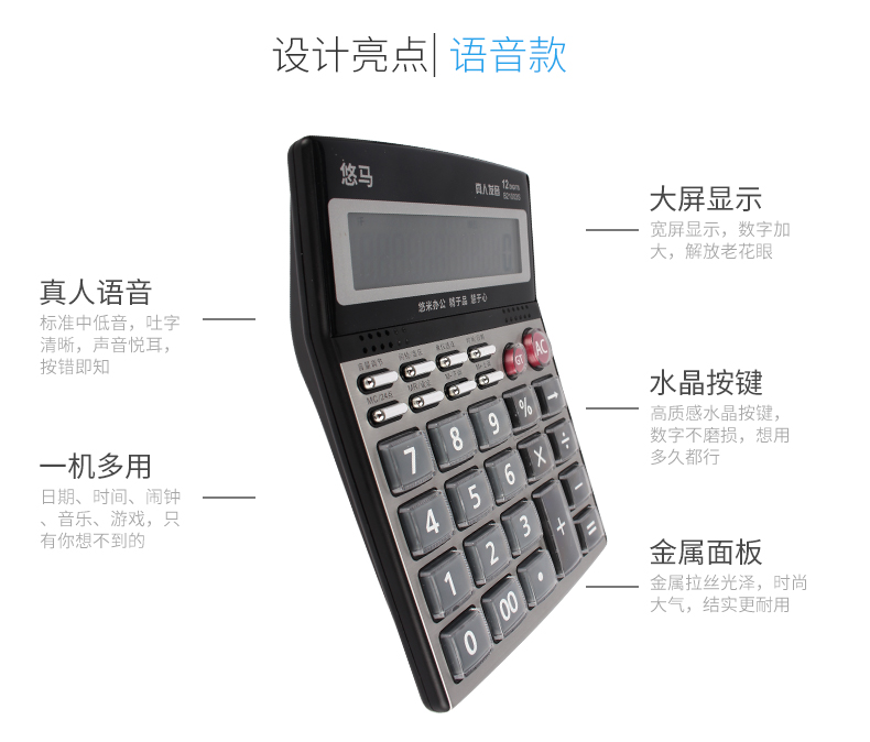 悠米 B21002S計算機大屏語音真人大按鍵財務專用太陽能12位計算器便捷
