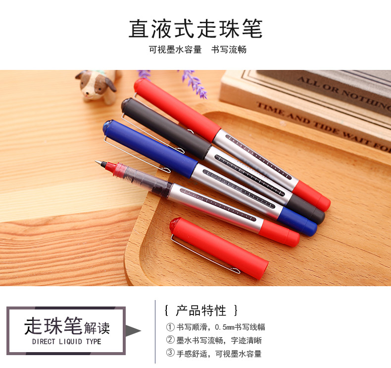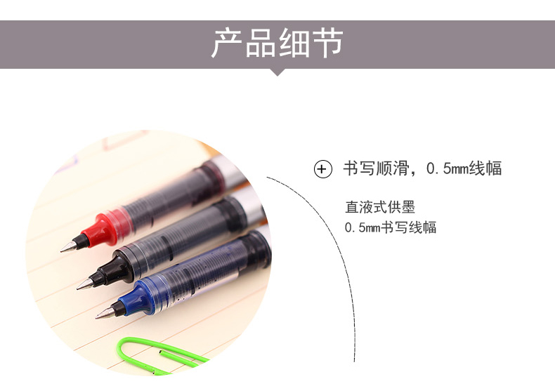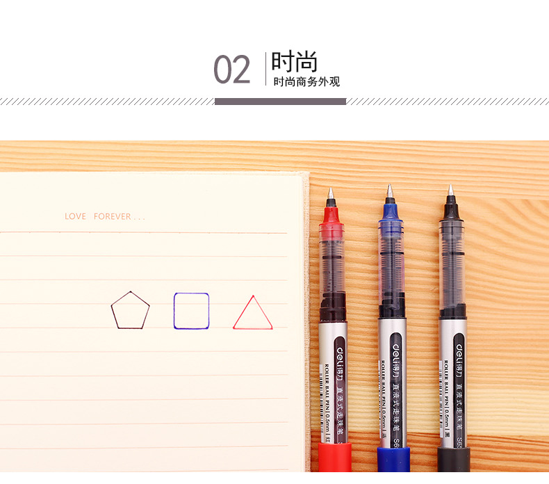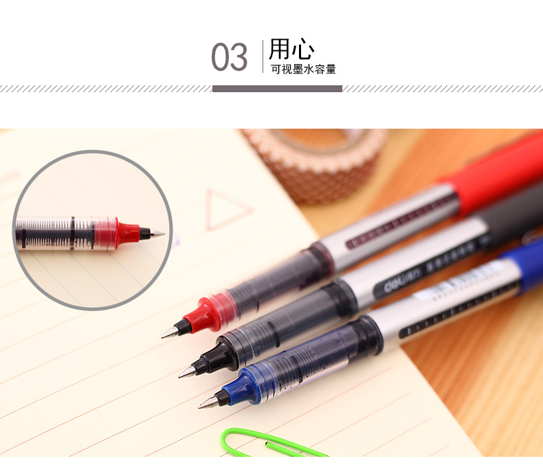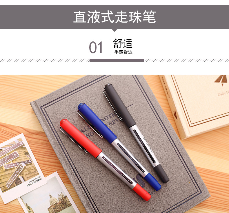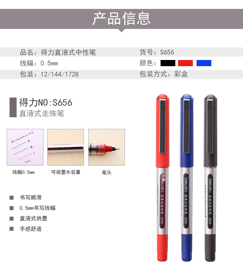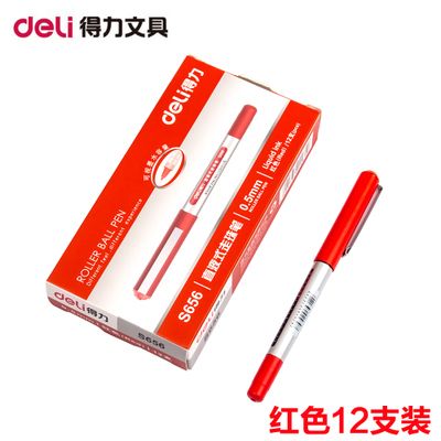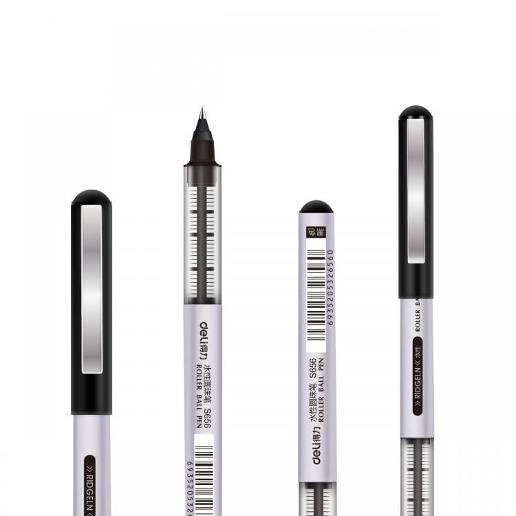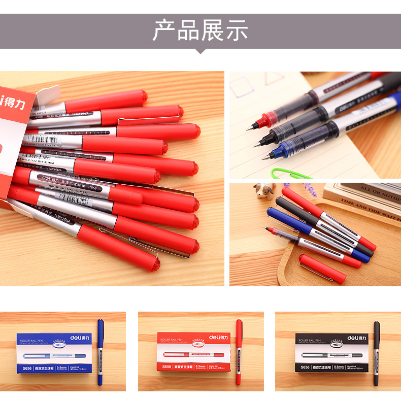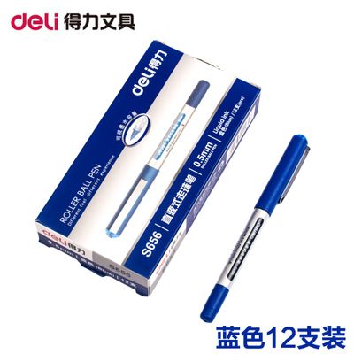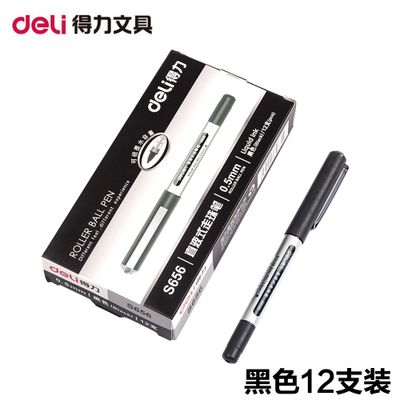 得力s656直液式走珠筆學生考試專用中性筆簽字筆辦公黑筆水筆12支 開學