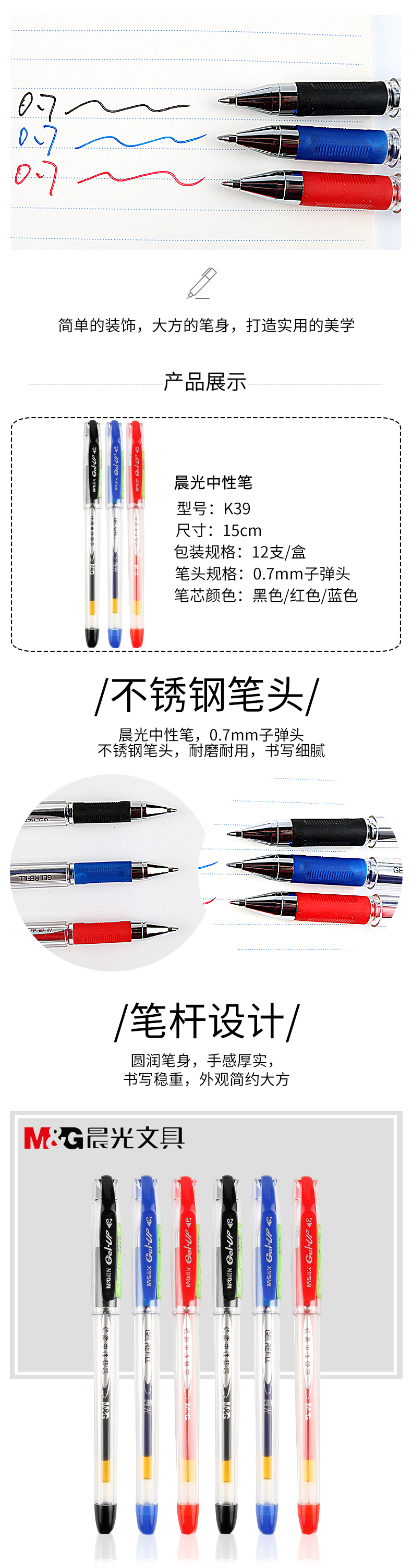 晨光文具K-39中性筆0.7mm辦公用品大筆畫水筆簽字筆商務款 開學