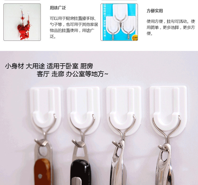 萬豐3個裝簡約不留痕強力粘勾掛鉤鐵鉤 家居實用門后掛鉤廚房粘鉤