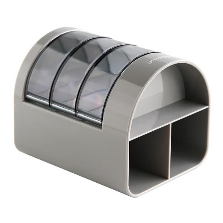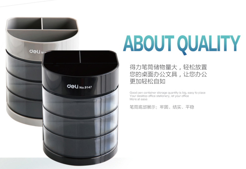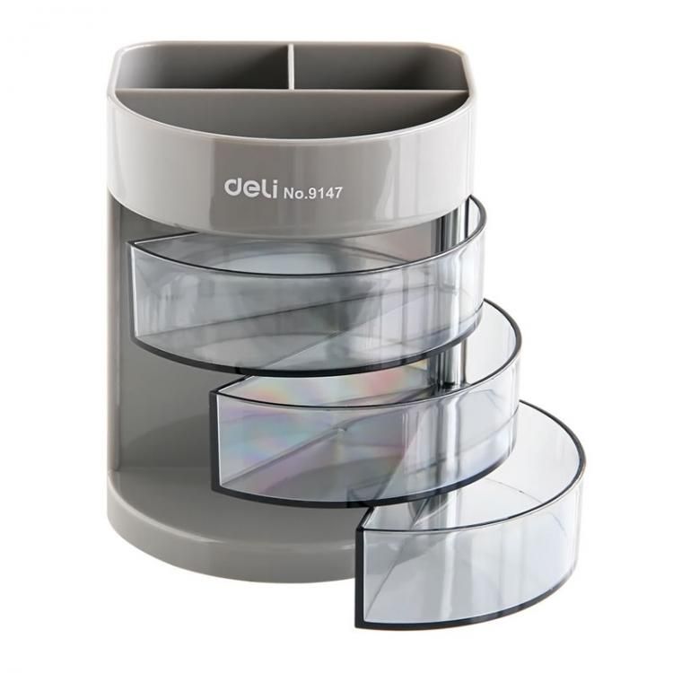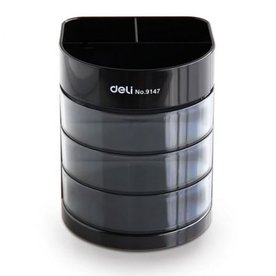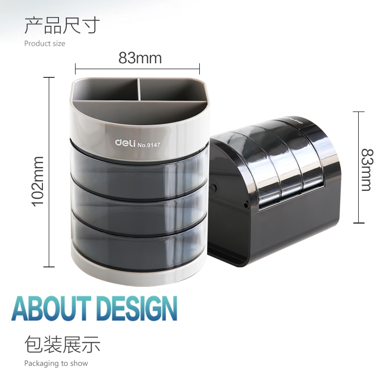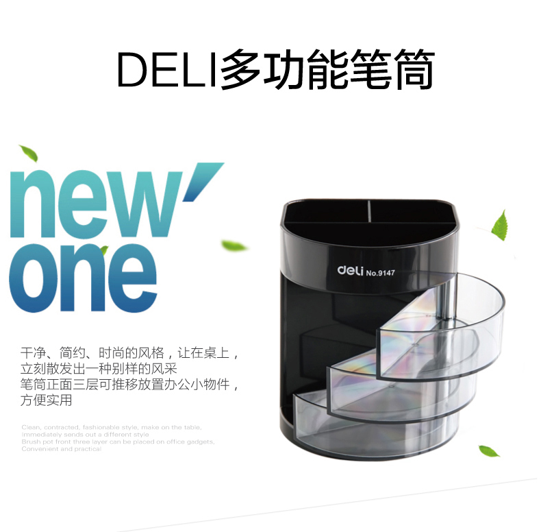 得力9147多功能筆筒商務辦公文具塑料筆座桌面收納小件帶抽屜筆筒