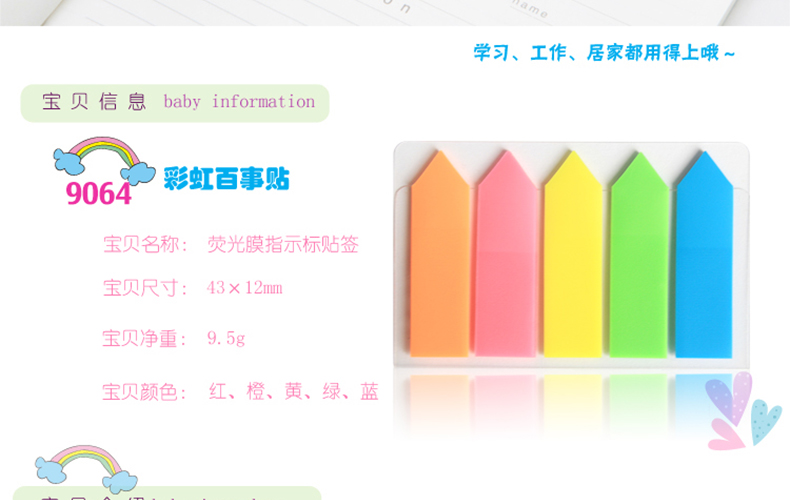 得力9064百事貼創(chuàng)意彩色便簽貼紙 熒光分類索引標簽貼便利貼 箭頭標簽 百事貼