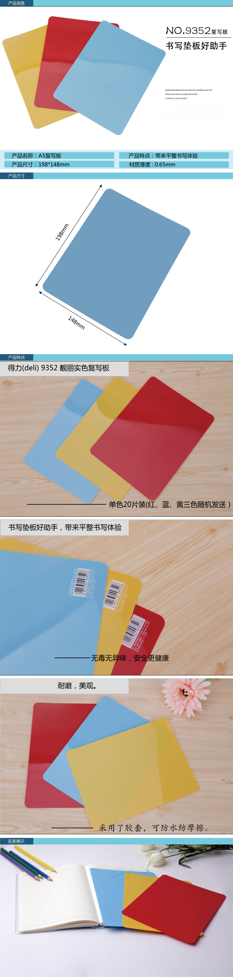 得力9352 A5 墊板 A5復寫板夾19.8x14.8厘米書寫墊板襯板學生