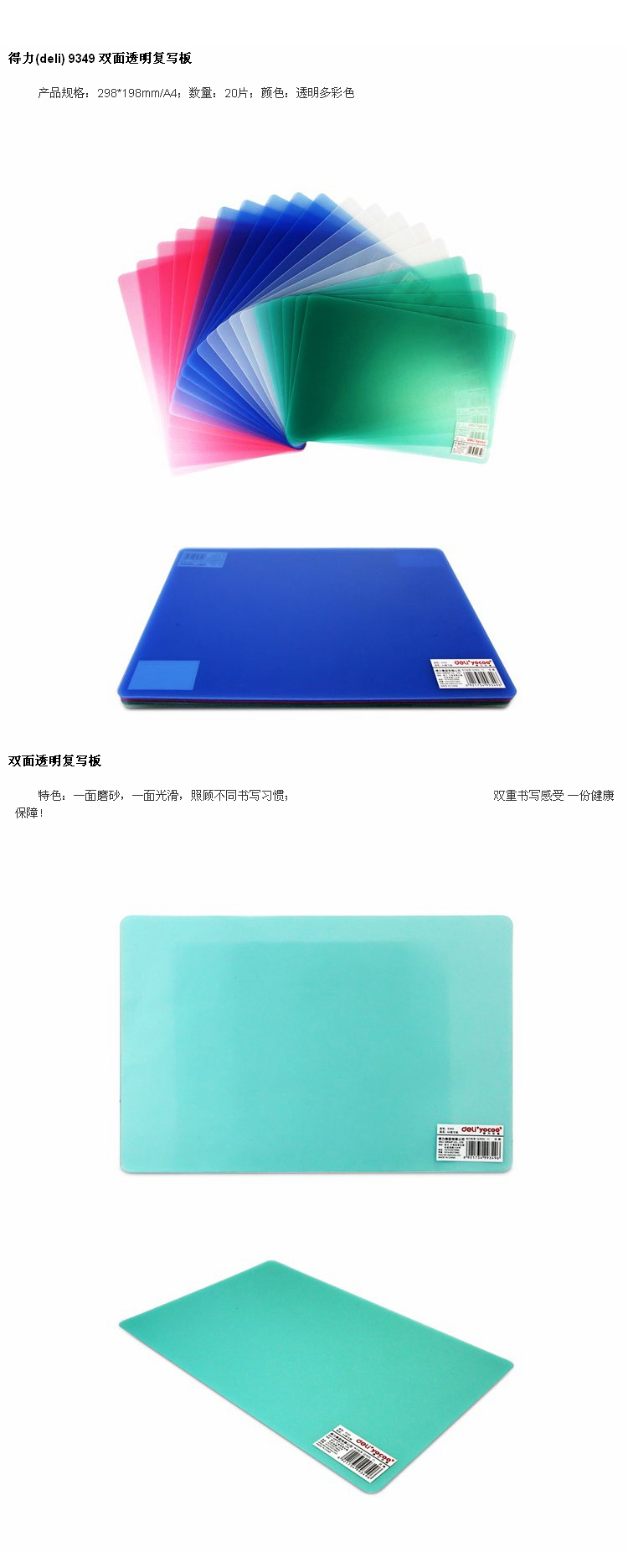 得力9349雙面復寫板 A4書寫墊板/寫字板 全新pp材質 無毒無異味