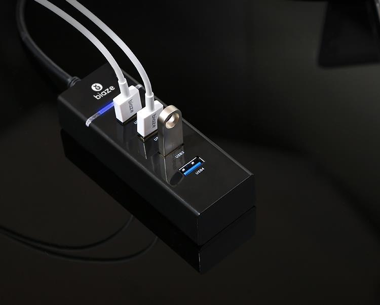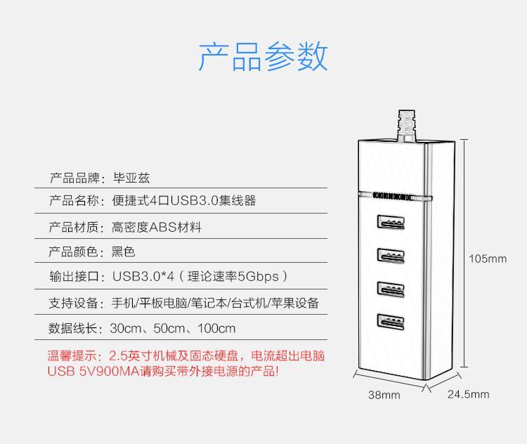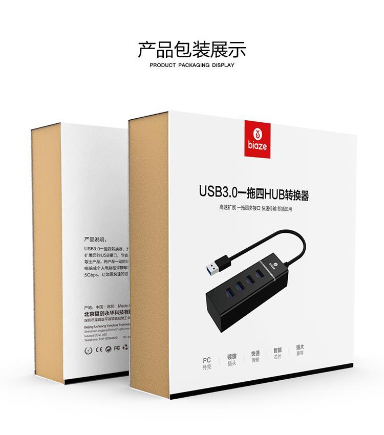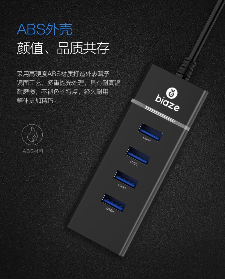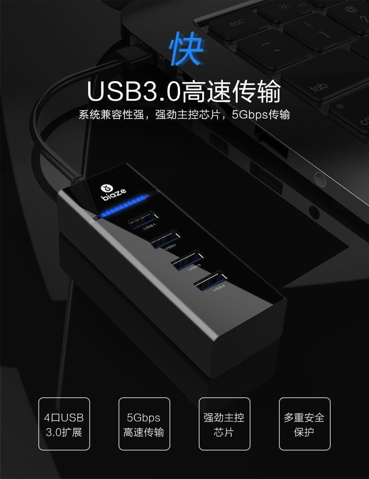 畢亞茲(biaze) USB分線器3.0 高速擴展一拖四多接口 0.3米 筆記本