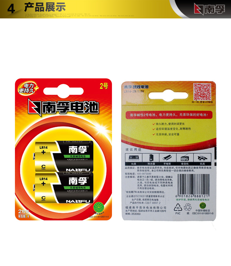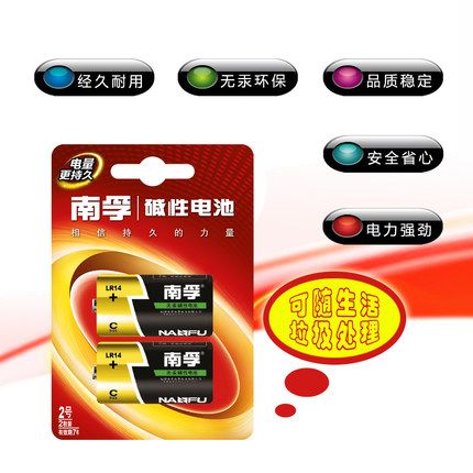 南孚電池1號 2號C型LR14費雪玩具 保險柜箱1.5V中號堿性電池2節 LR20-2B LR14-2B