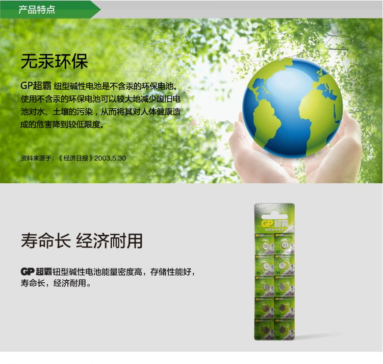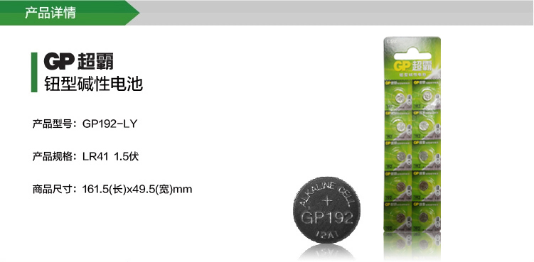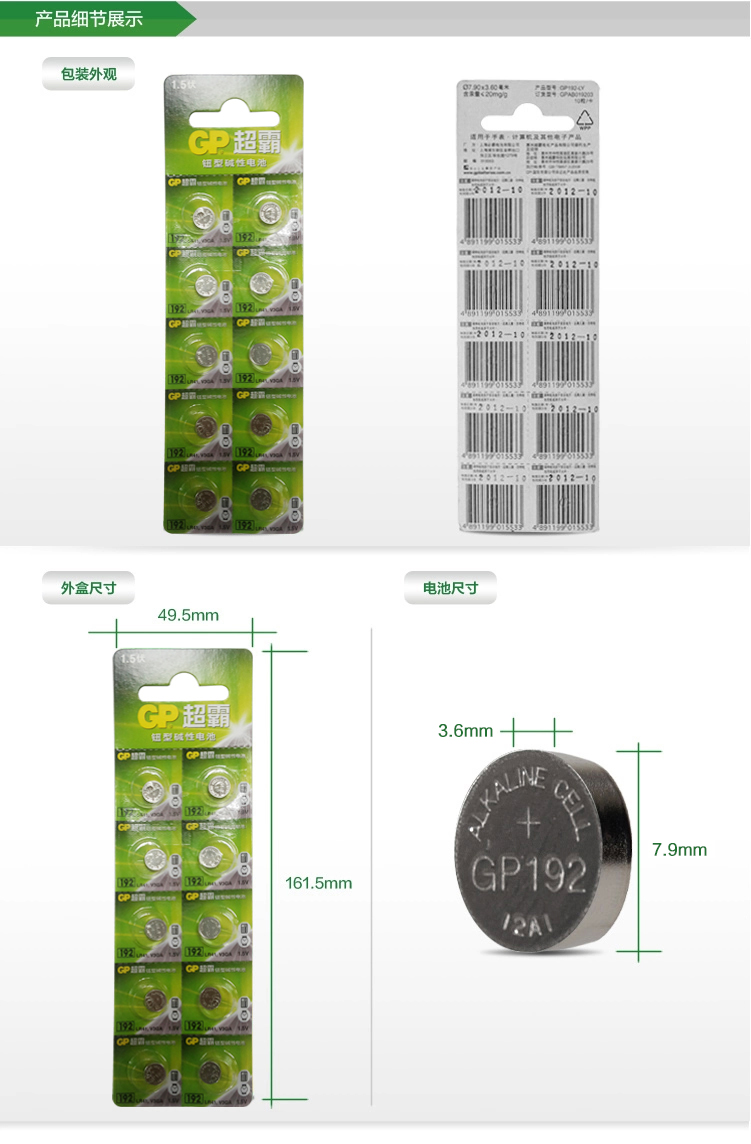 GP超霸192紐扣堿性電池AG3 LR41 392 L736體溫計電子表