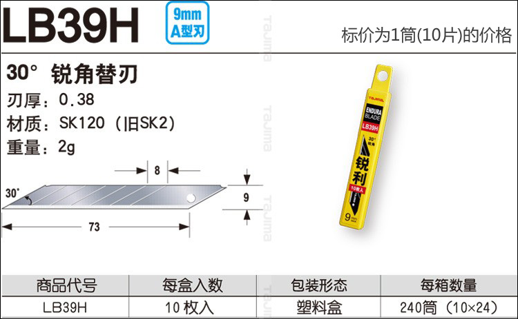 日本田島9mm刀片銳利型替刃配30度小號墻紙貼膜美工刀片LB39H