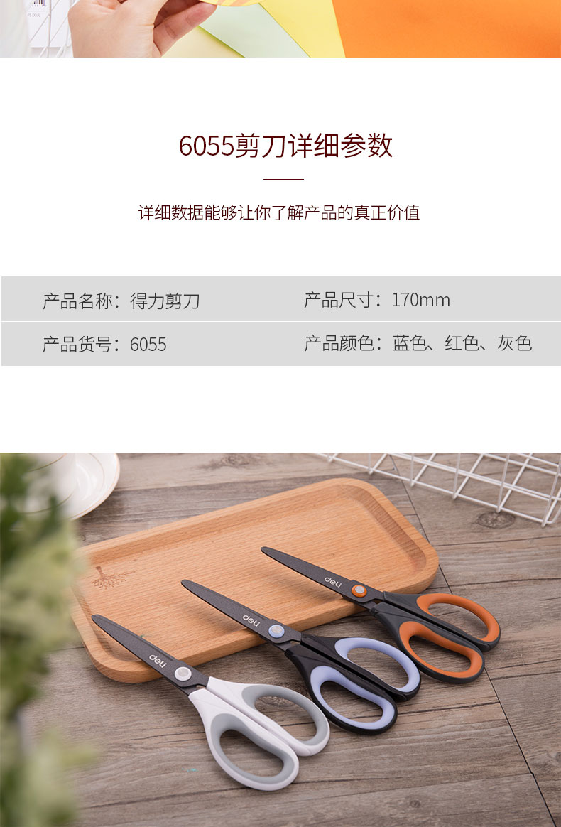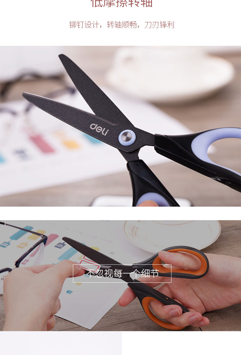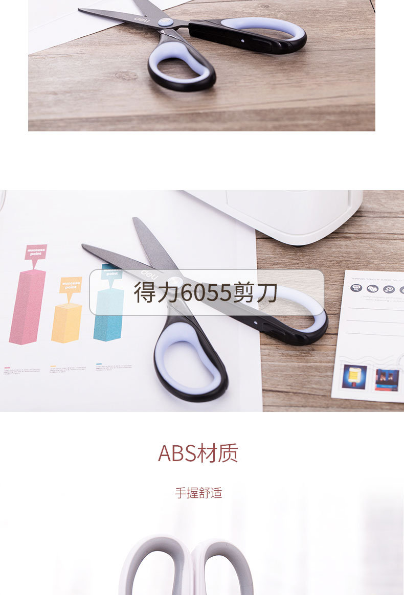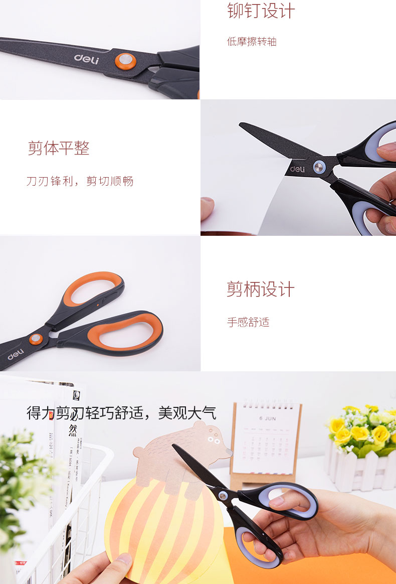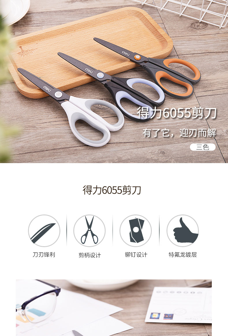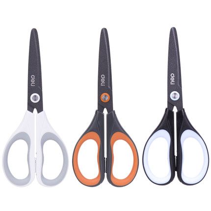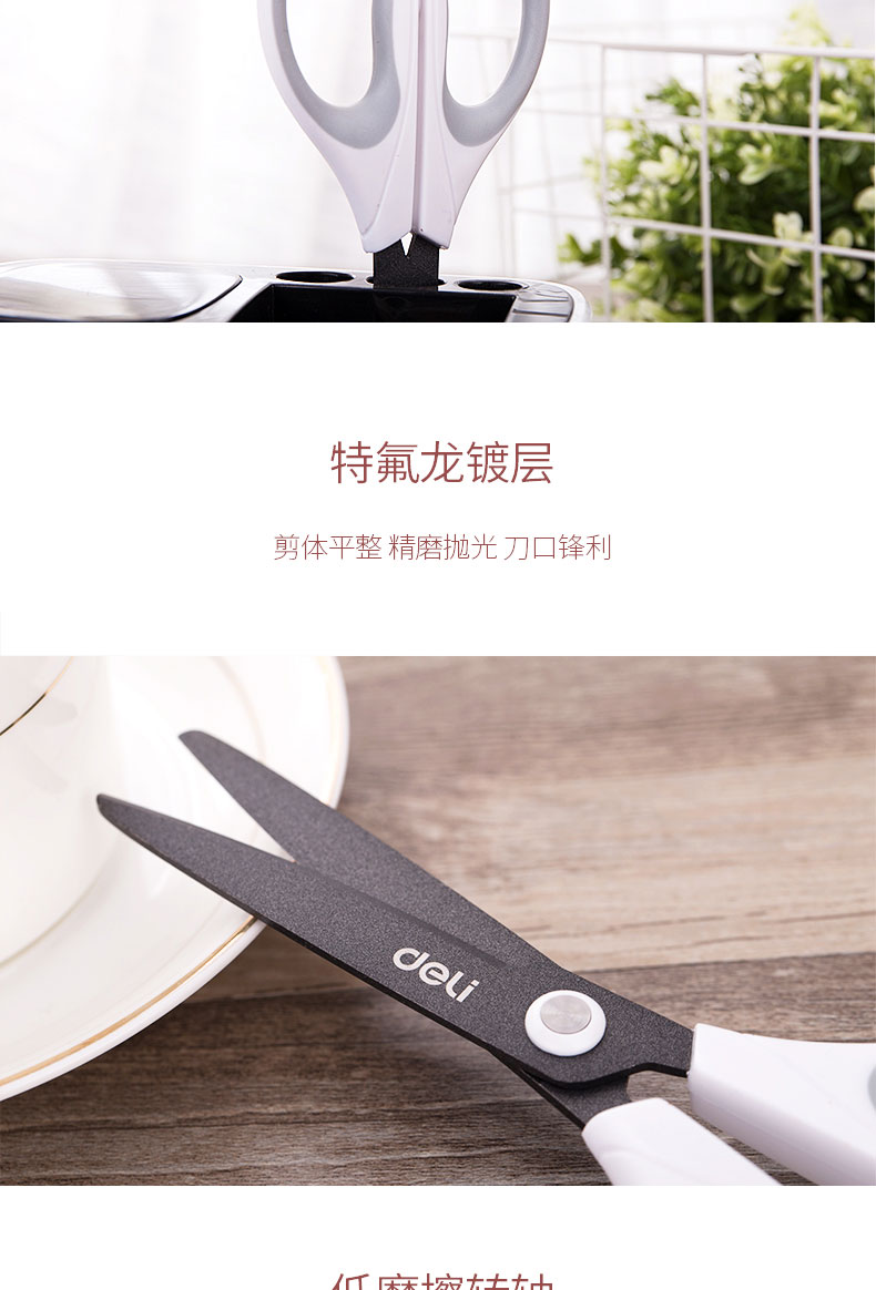 得力6055 特氟龍材質(zhì)防粘不銹鋼剪刀/顏色隨機(jī)(deli)