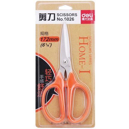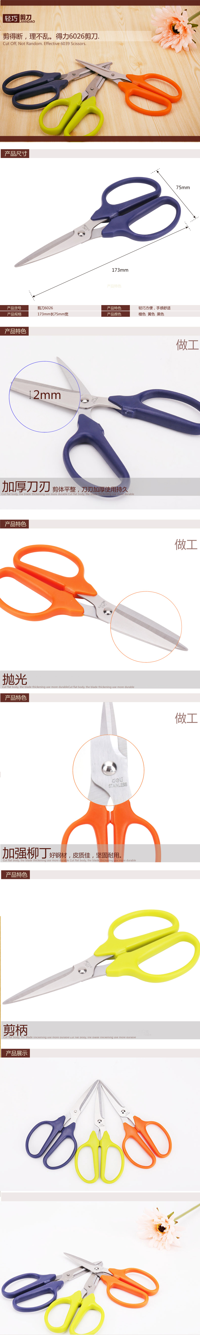 得力 剪刀辦公剪紙手工不銹鋼剪子學生文具家用小剪刀 彩色手柄-6026