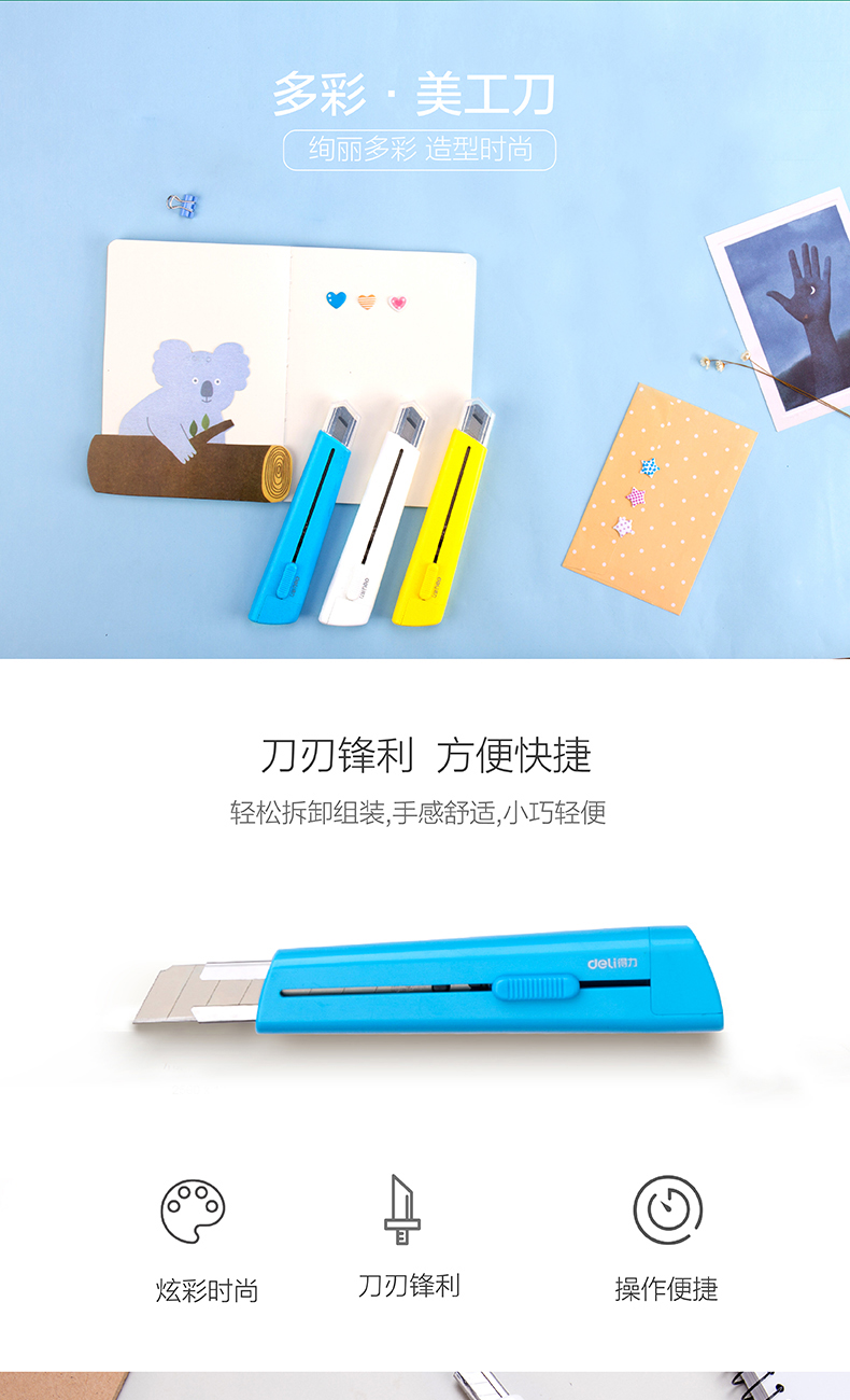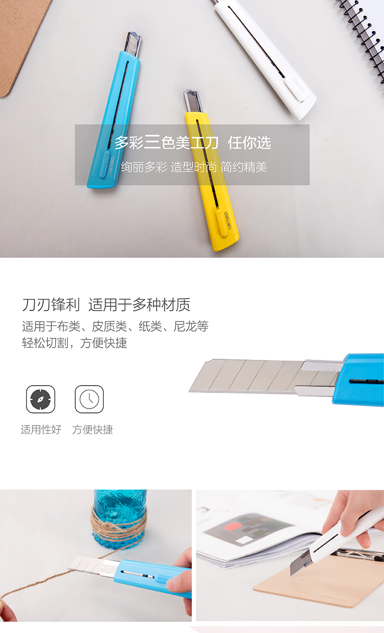 得力 2038 帶保護套小號美工刀裁紙刀 壁紙刀小刀 顏色隨機 2038 (deli)