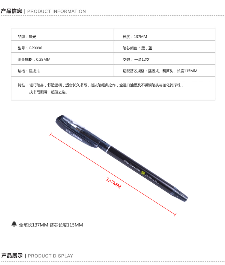 晨光 0.28mm財務專用筆 GP-0096特細記賬中性筆 簽字筆水筆