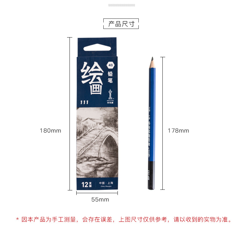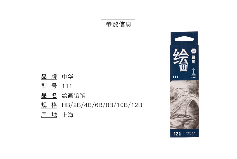 上海中華111 美術(shù)素描繪圖鉛筆 速寫考試粗藍(lán)桿8B