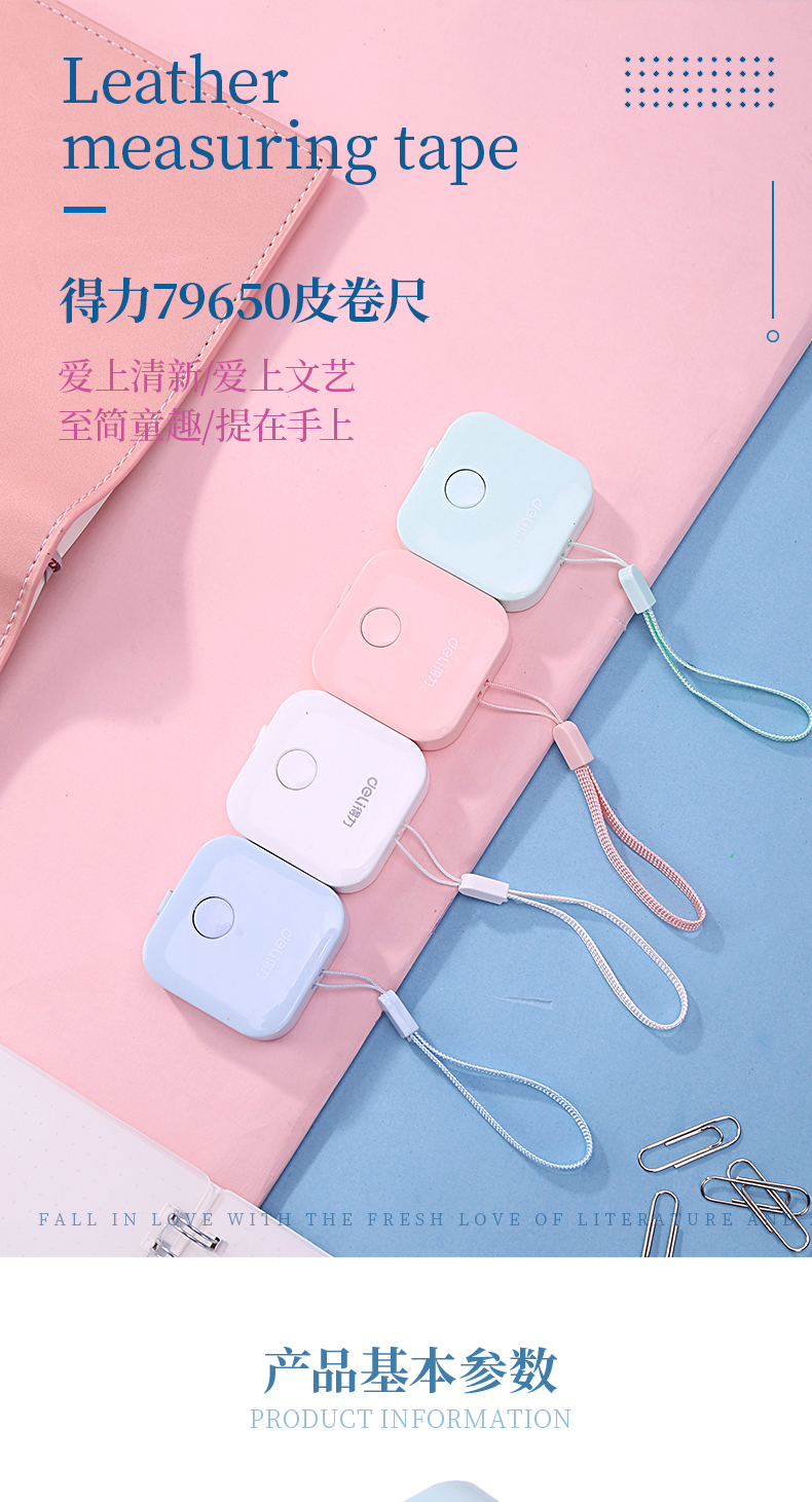 得力79650迷你小皮尺 1.5米量衣尺軟尺 拉尺伸縮尺鑰匙扣卷尺