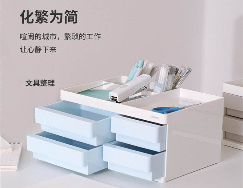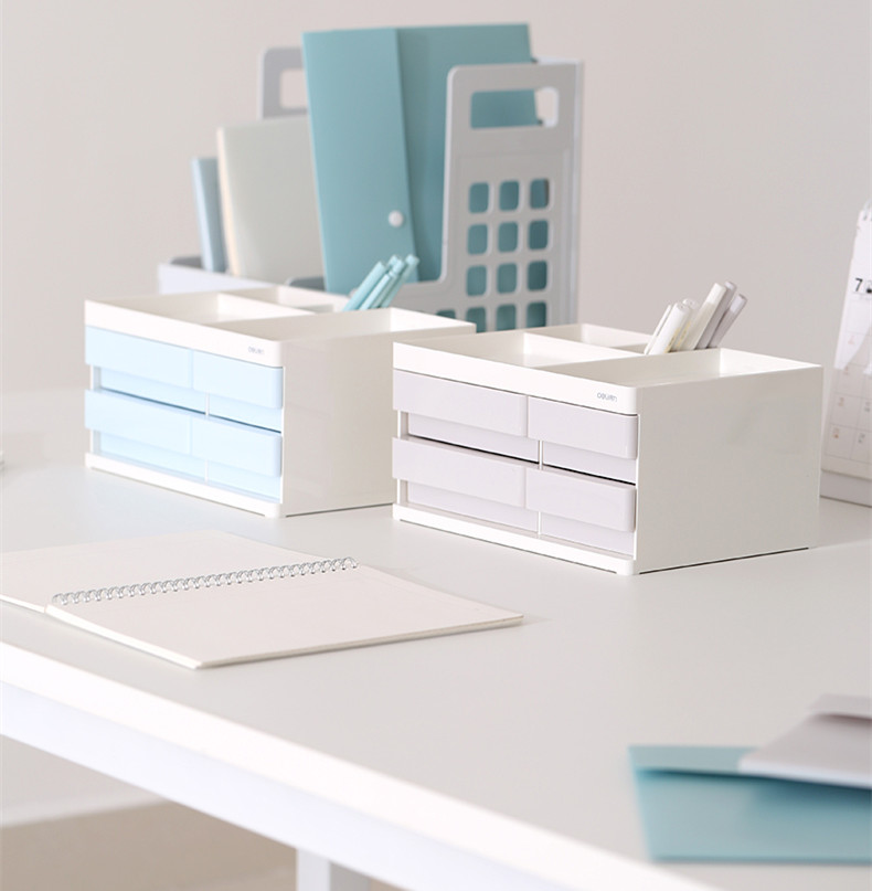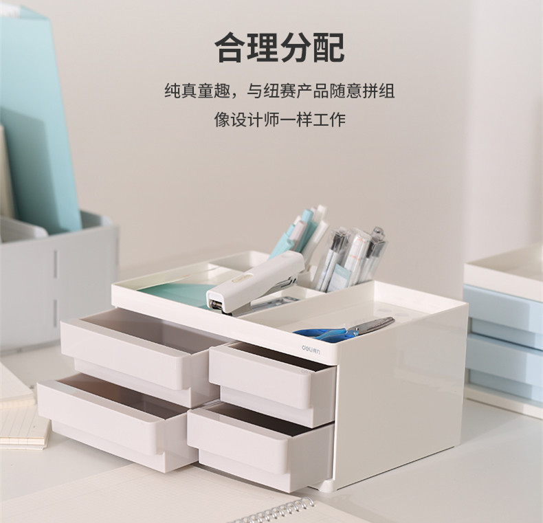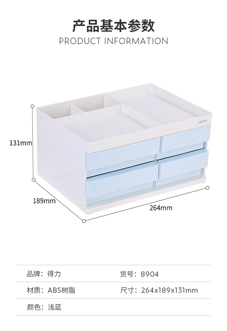 得力8904收納盒ABS樹脂強度高辦公收納學生文具整理帶筆筒盒子