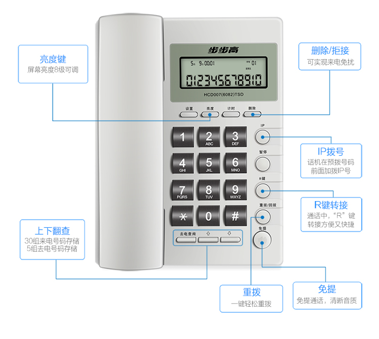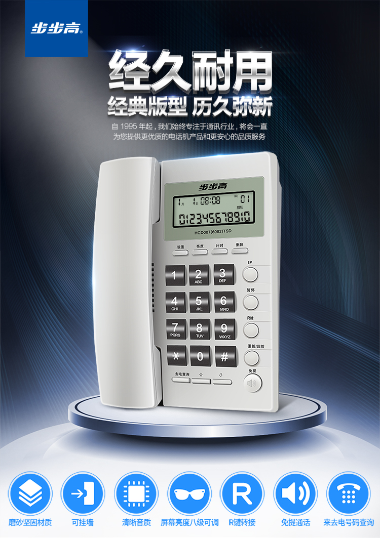 步步高(BBK) 步步高6082有繩電話機座機固定電話 有線座式家用辦公電話 雅白色