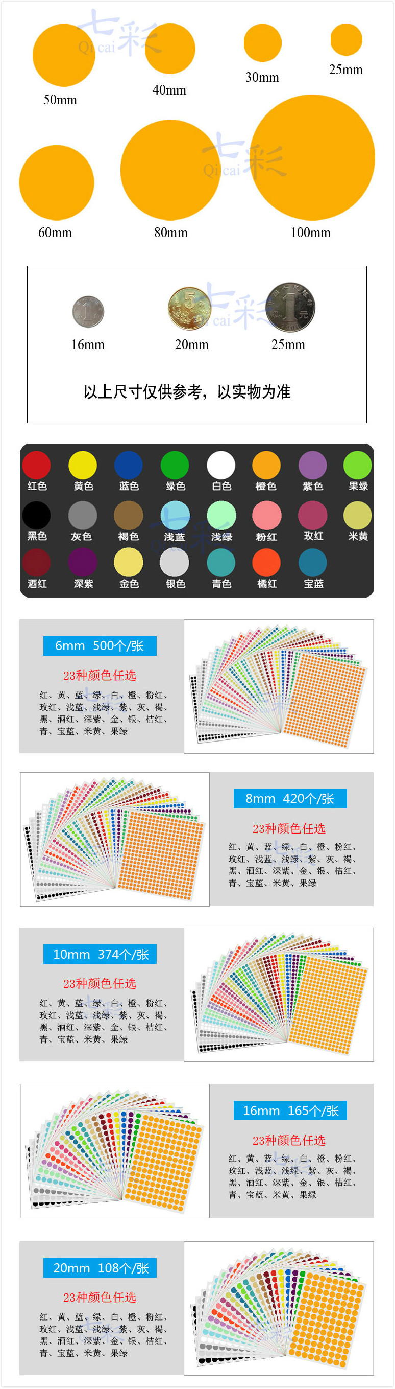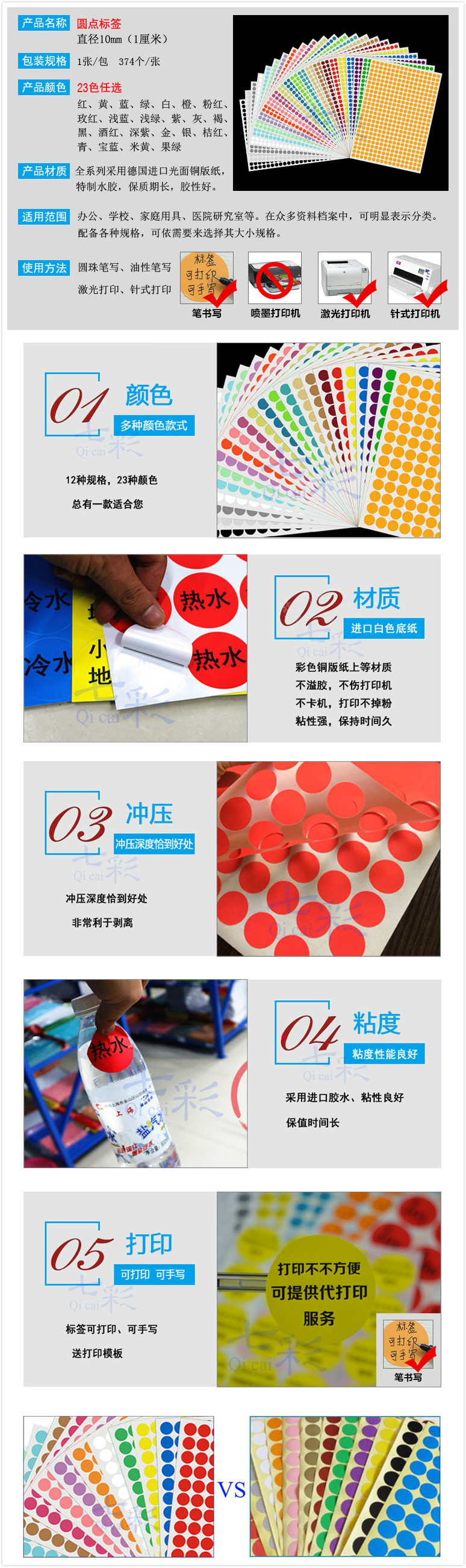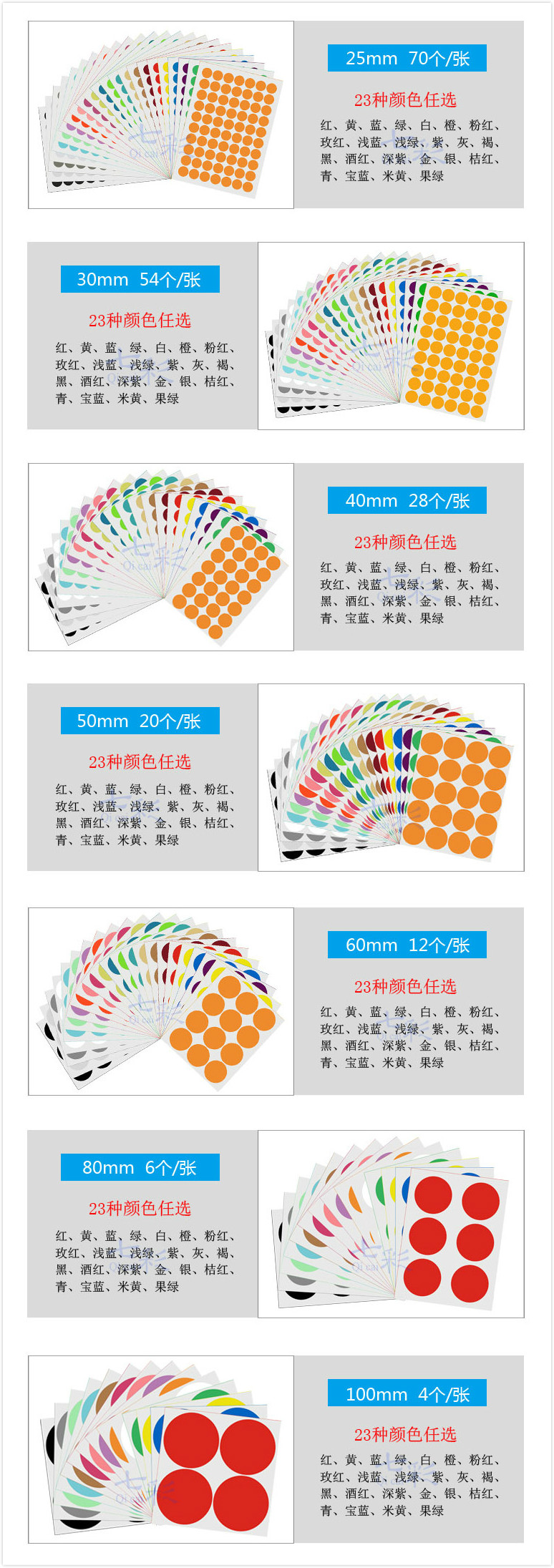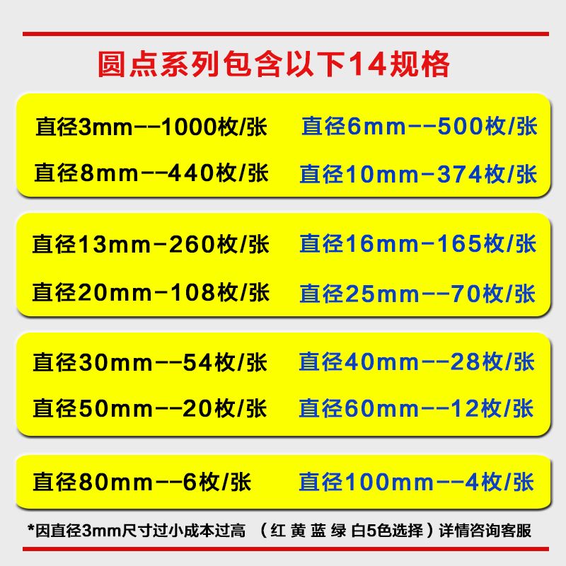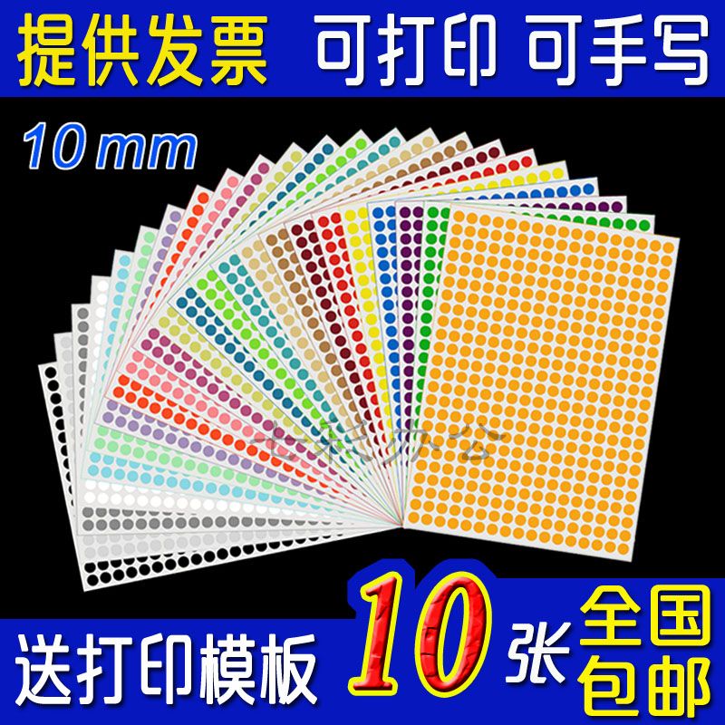 彩色圓點標簽 a4不干膠打印貼紙 記號貼圓形色標 即時貼直徑10mm