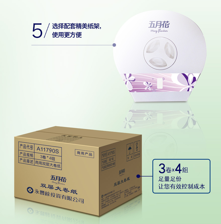 五月花衛(wèi)生紙卷紙雙層240米12卷大盤(pán)紙批發(fā)家用商用廁紙 大卷紙