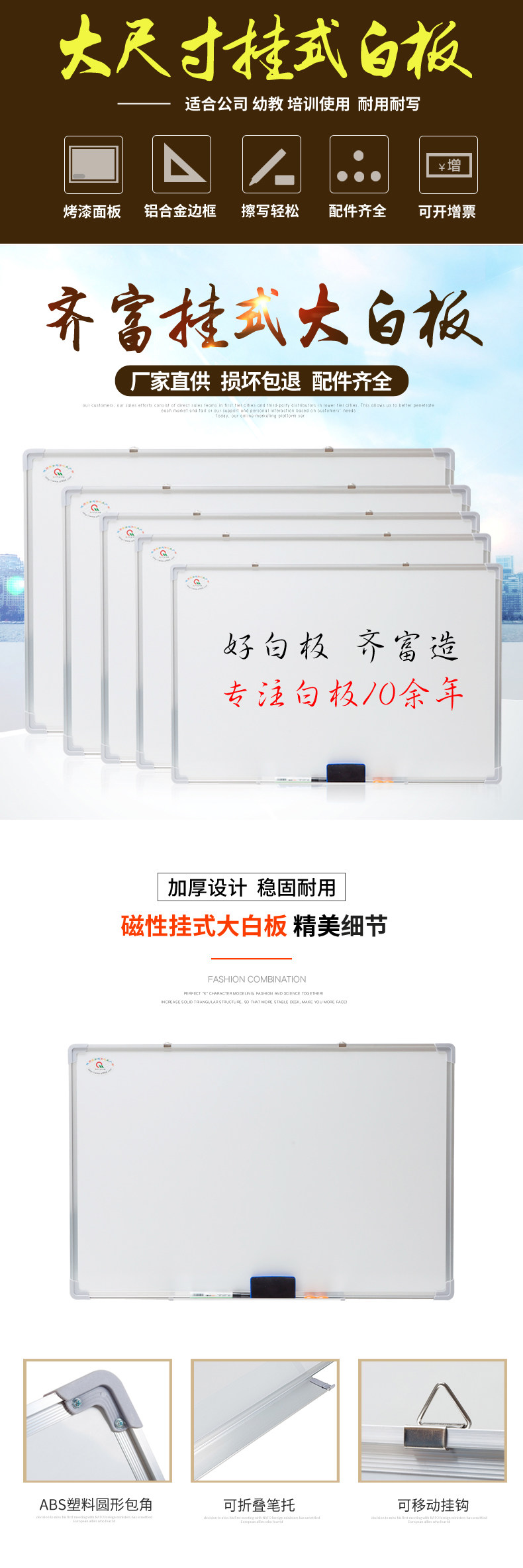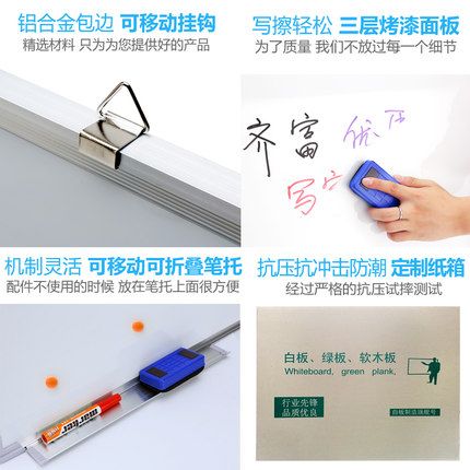 90*120cm 齊富單面磁性掛式白板辦公書寫壁掛白板小黑板墻家用兒童涂鴉小白板黑板掛式教學白班寫字板會議留言記事看板