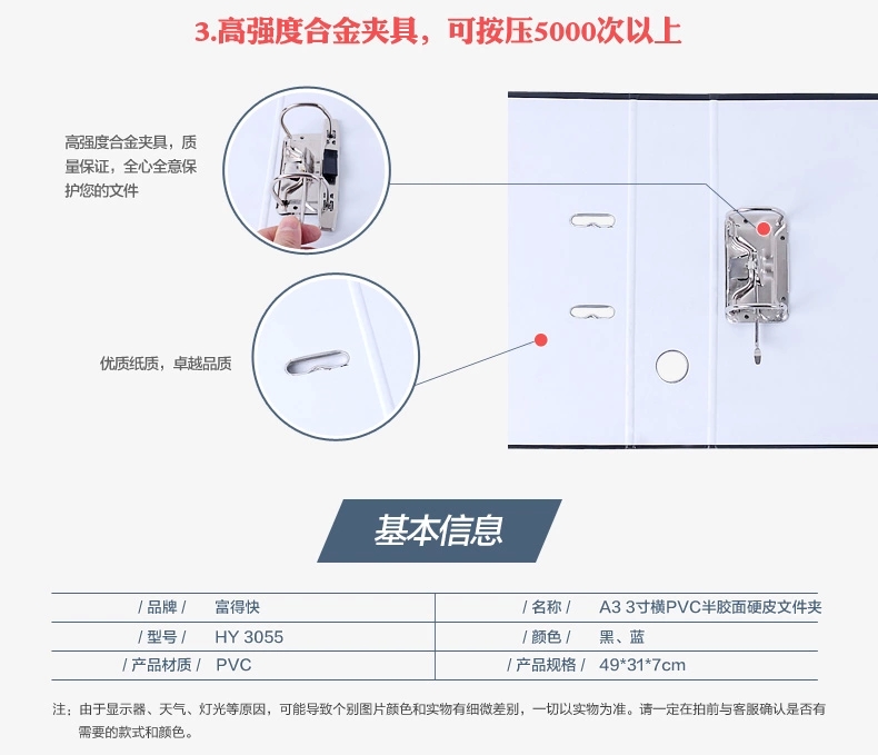 富得快HY2054/HY3055 A3文件夾橫式打孔紙板夾 2寸/3寸活頁夾 A3圖紙夾