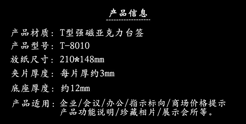 21*14.8cm A5臺簽亞克力強磁 臺牌展示牌雙面/臺卡 桌牌/寬21高14.8cm