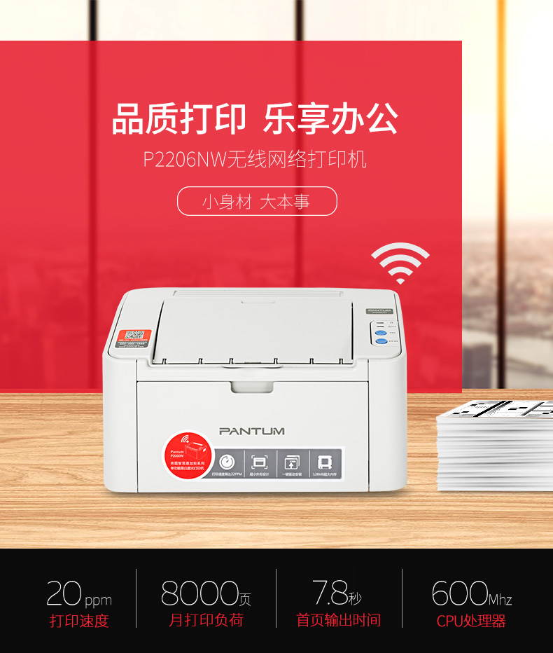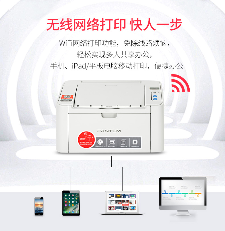 奔圖(PANTUM)P2506NW 黑白激光打印機 A4打印 WiFi打印 小型家用打印