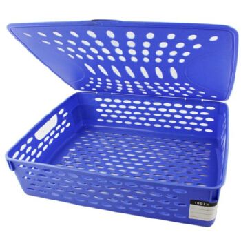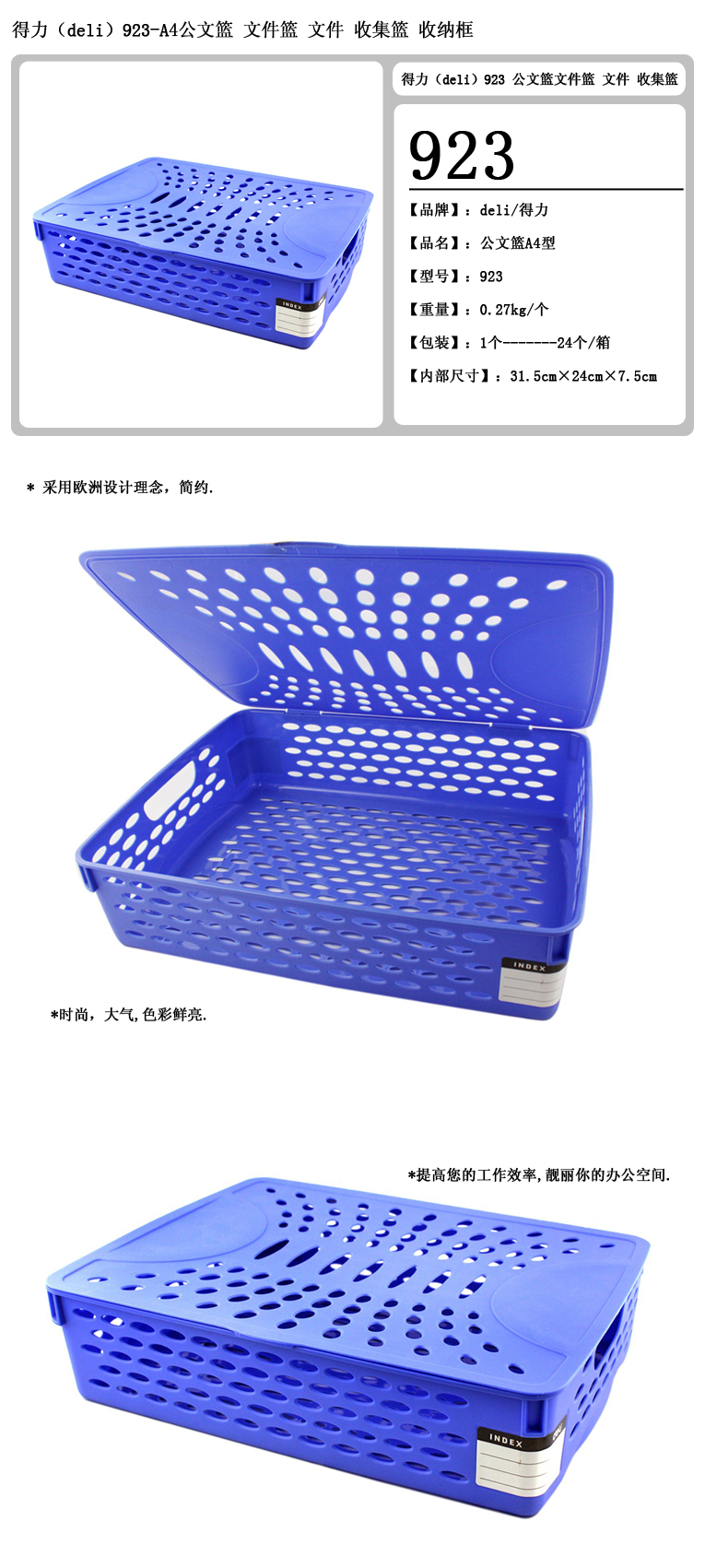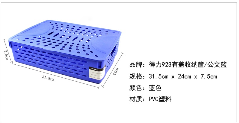 得力923 公文籃 文件框文件籃資料收納盒文件筐檔案收納辦公用品網狀公文籃 923收納框(有蓋藍色)