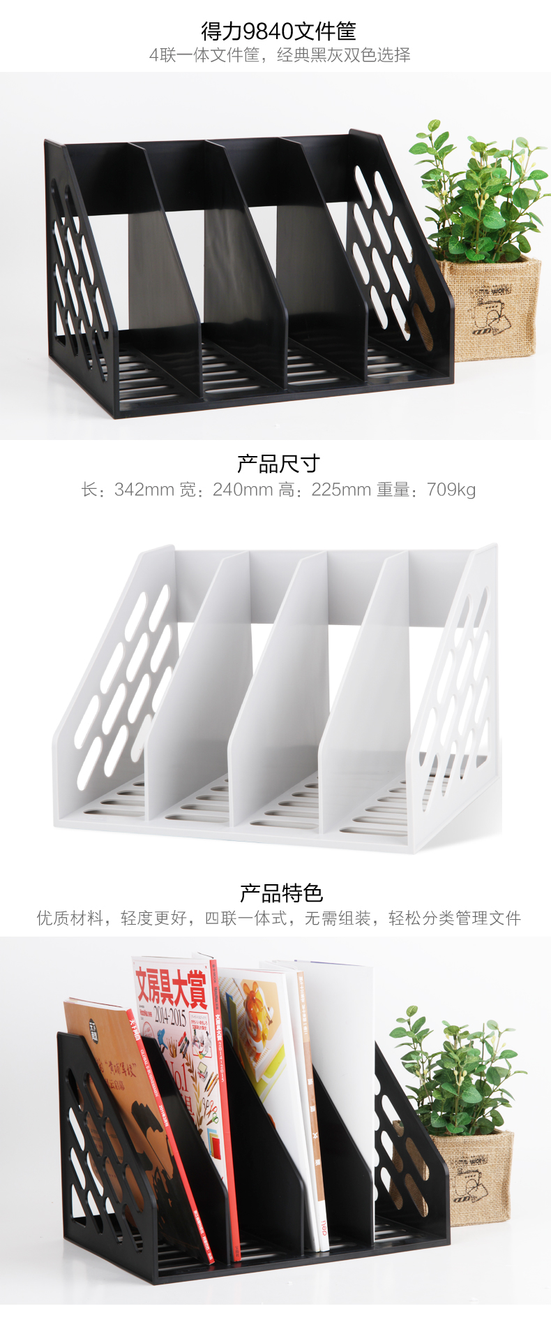 得力(黑)9840四聯一體文件框 文件欄 四欄文件欄