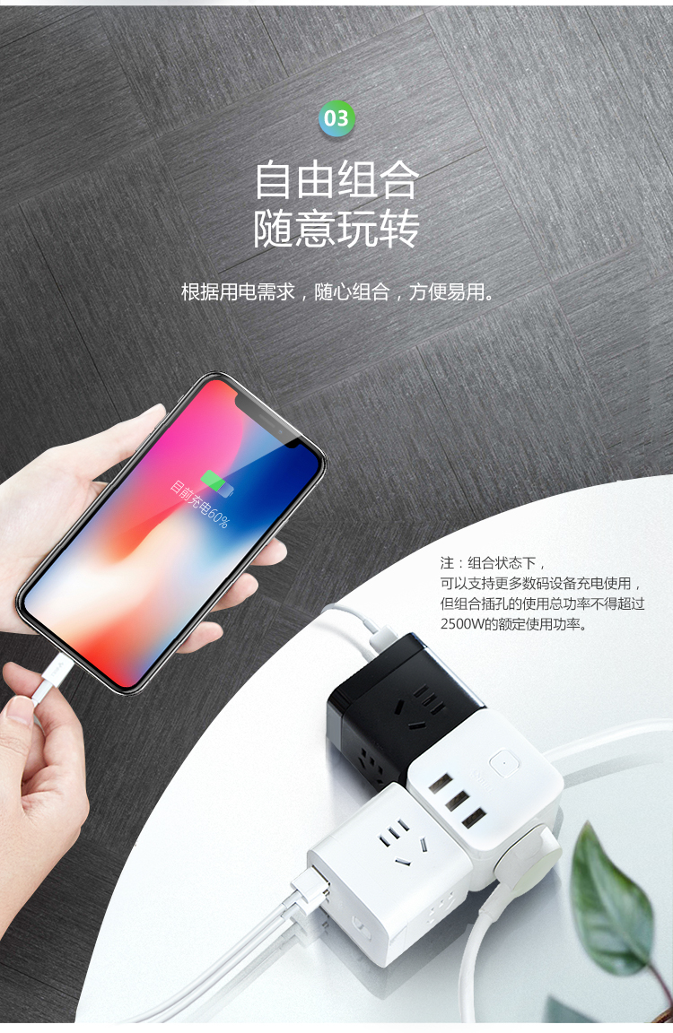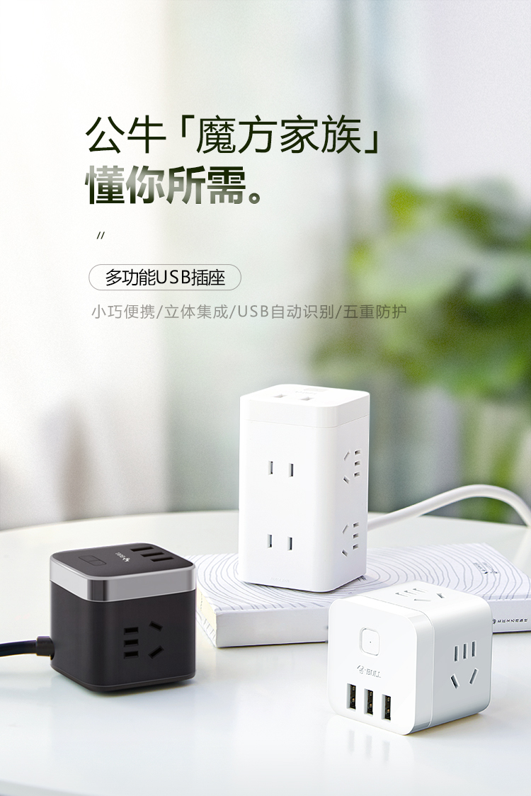 公牛 GNV-U9B122小魔方USB插座 插線板/插排/排插/接線板 2孔+2USB口 無線魔方