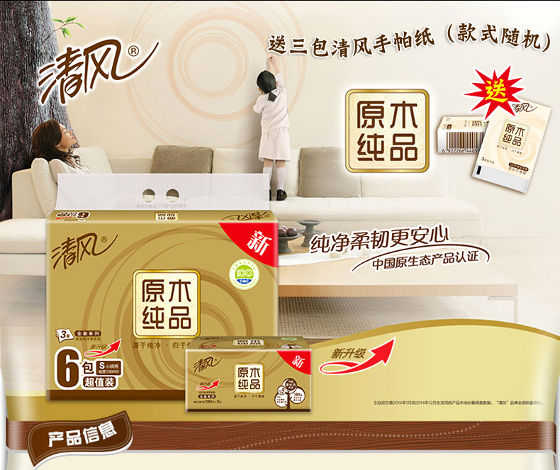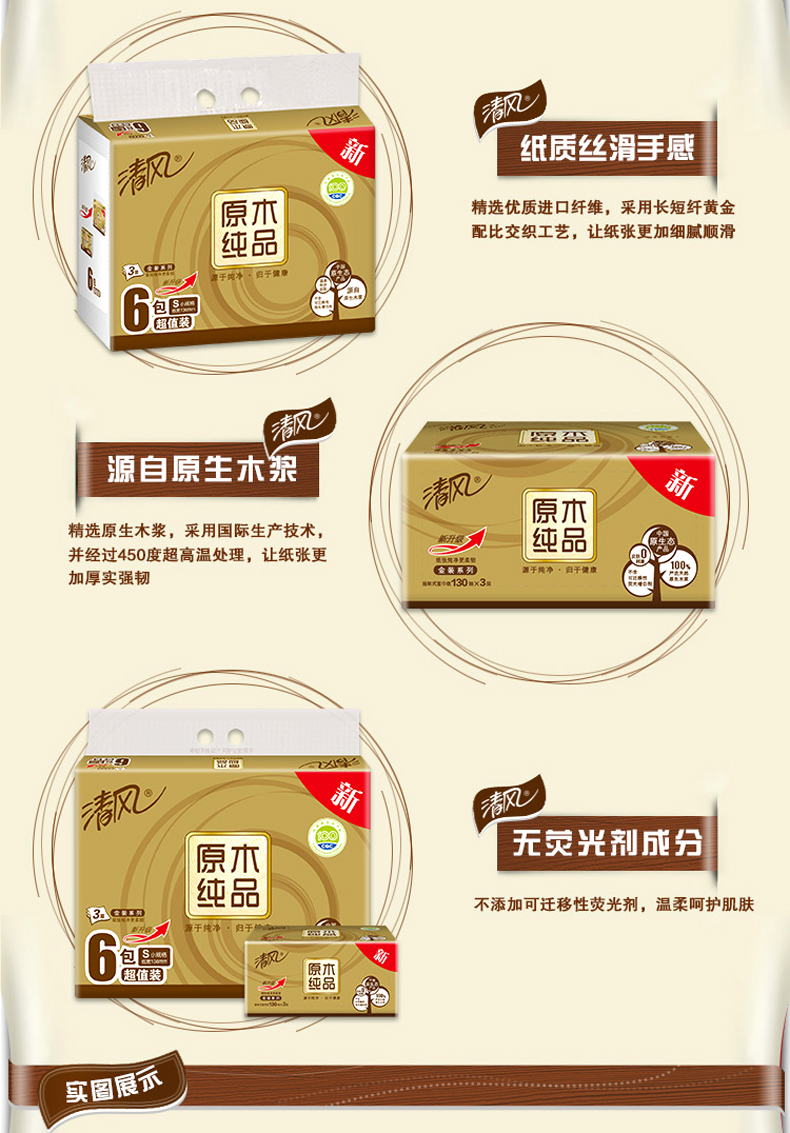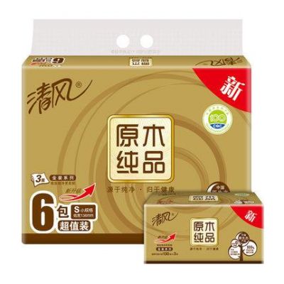 清風(fēng)BR65SJ1三層原木純品金裝塑包面紙-130抽 206*124mm,3層 清風(fēng)抽紙