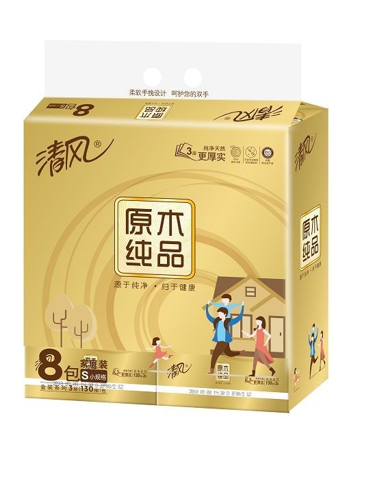 清風 BR85SJU三層原木純品金裝塑包面紙-130抽130抽 清風抽紙 面巾紙