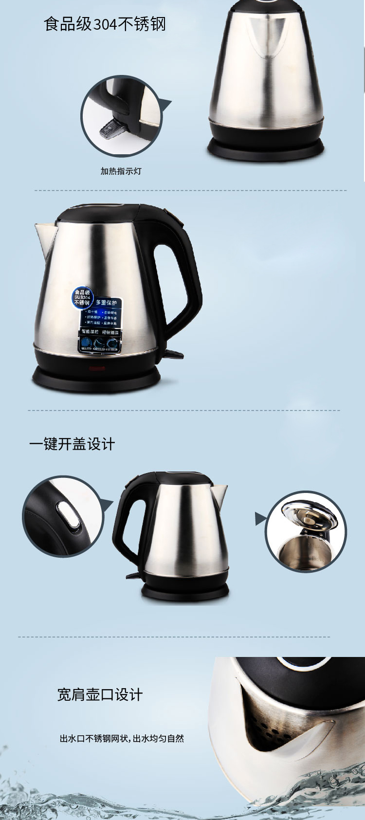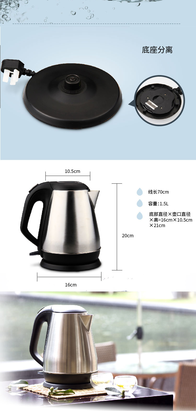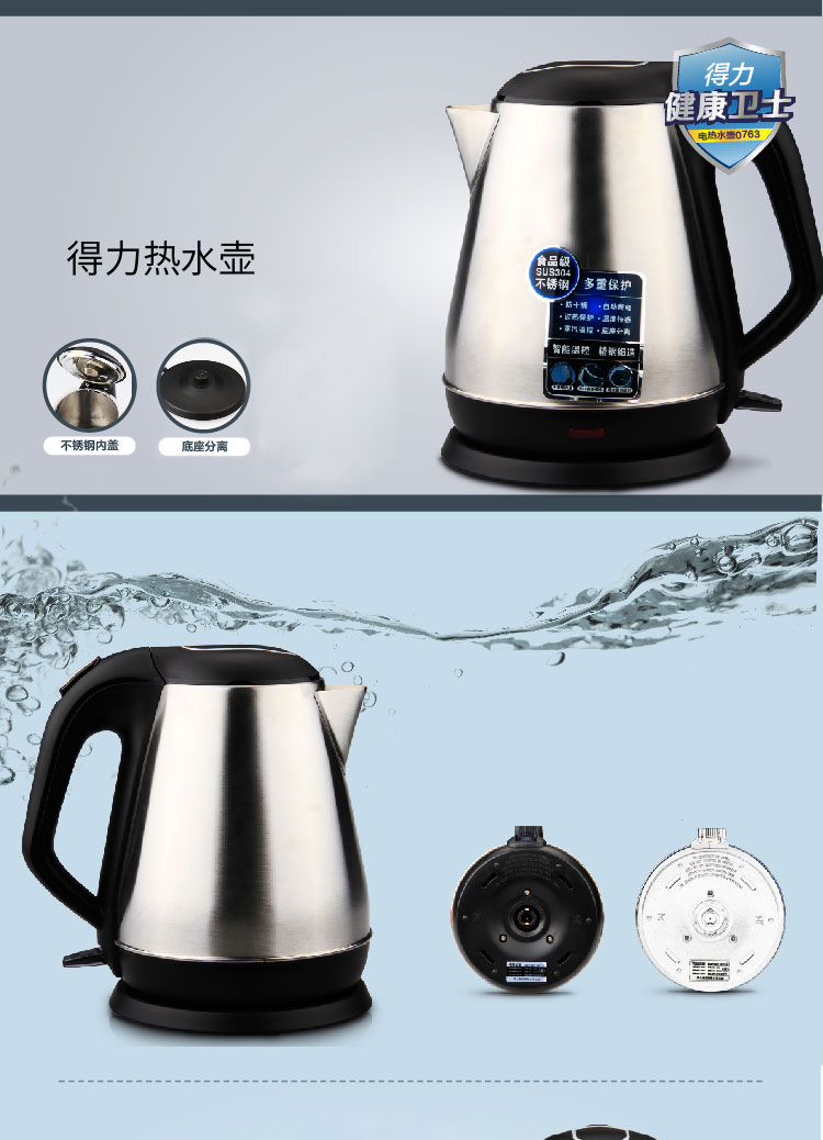 得力(deli) 0763 0764 電熱水壺1.5L(灰白)單層不銹鋼