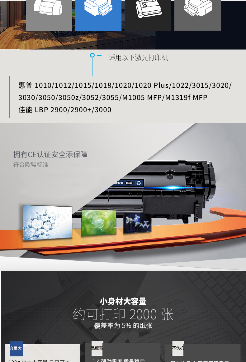 得力(deli)DBH-2612AT 易加粉硒鼓 12A黑色(適用惠普HP1020plus 1010 M1005 3050 M1319f 佳能2900 3000)