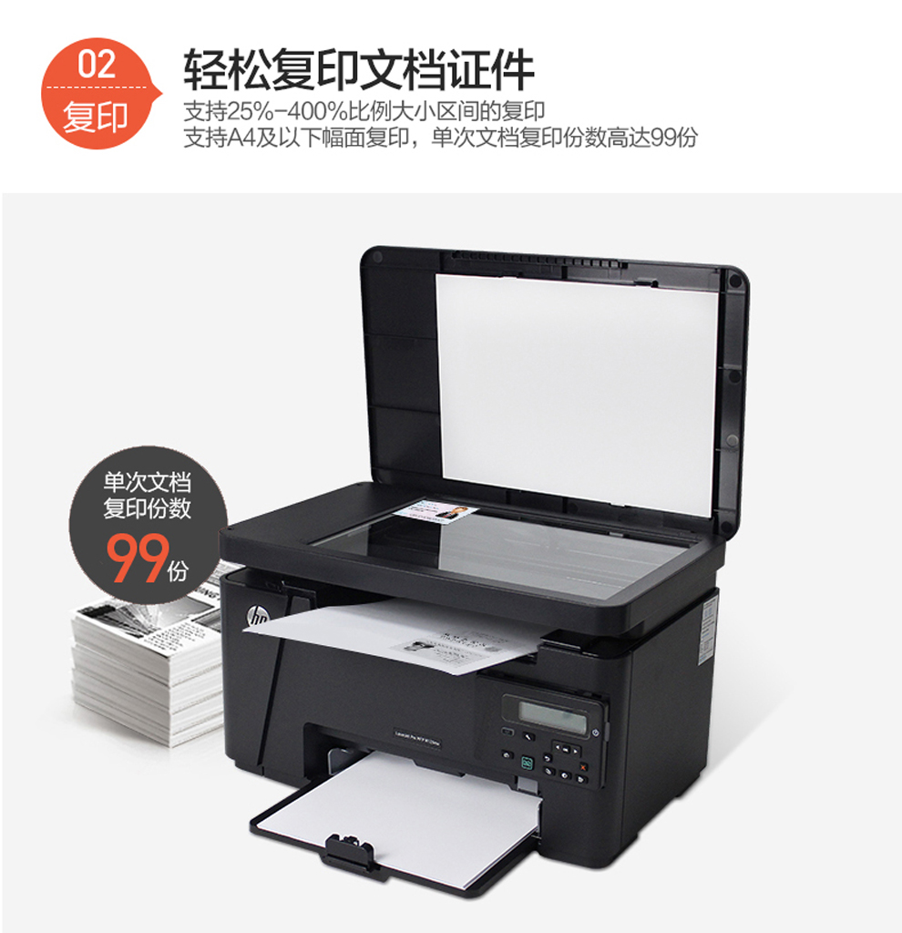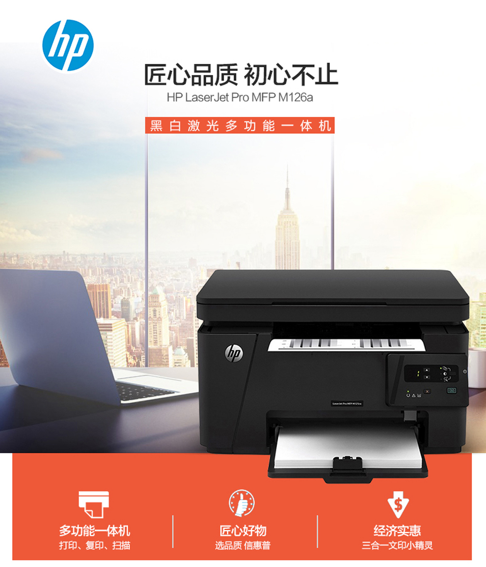 惠普(HP)打印機M126a A4黑白激光打印復印掃描一體機家用辦公 M126a三合一【僅USB連接】