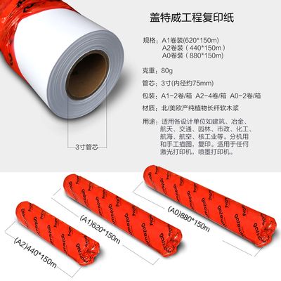 蓋特威3寸管 繪圖紙a1 工程復印紙 620*150繪圖紙 a0 白圖卷筒880*150 440*150