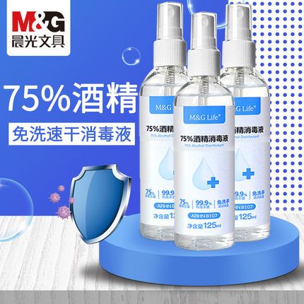 晨光免水洗消毒液 75% 酒精 120ml消毒水 非84消毒液 乙醇消毒噴霧