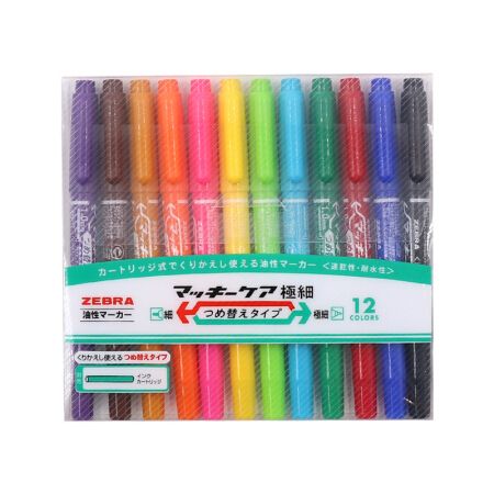 日本斑馬牌(ZEBRA)速干油性小雙頭記號筆 彩色多用簽字筆光盤筆 勾線描邊筆 YYTS5-12C 12色套